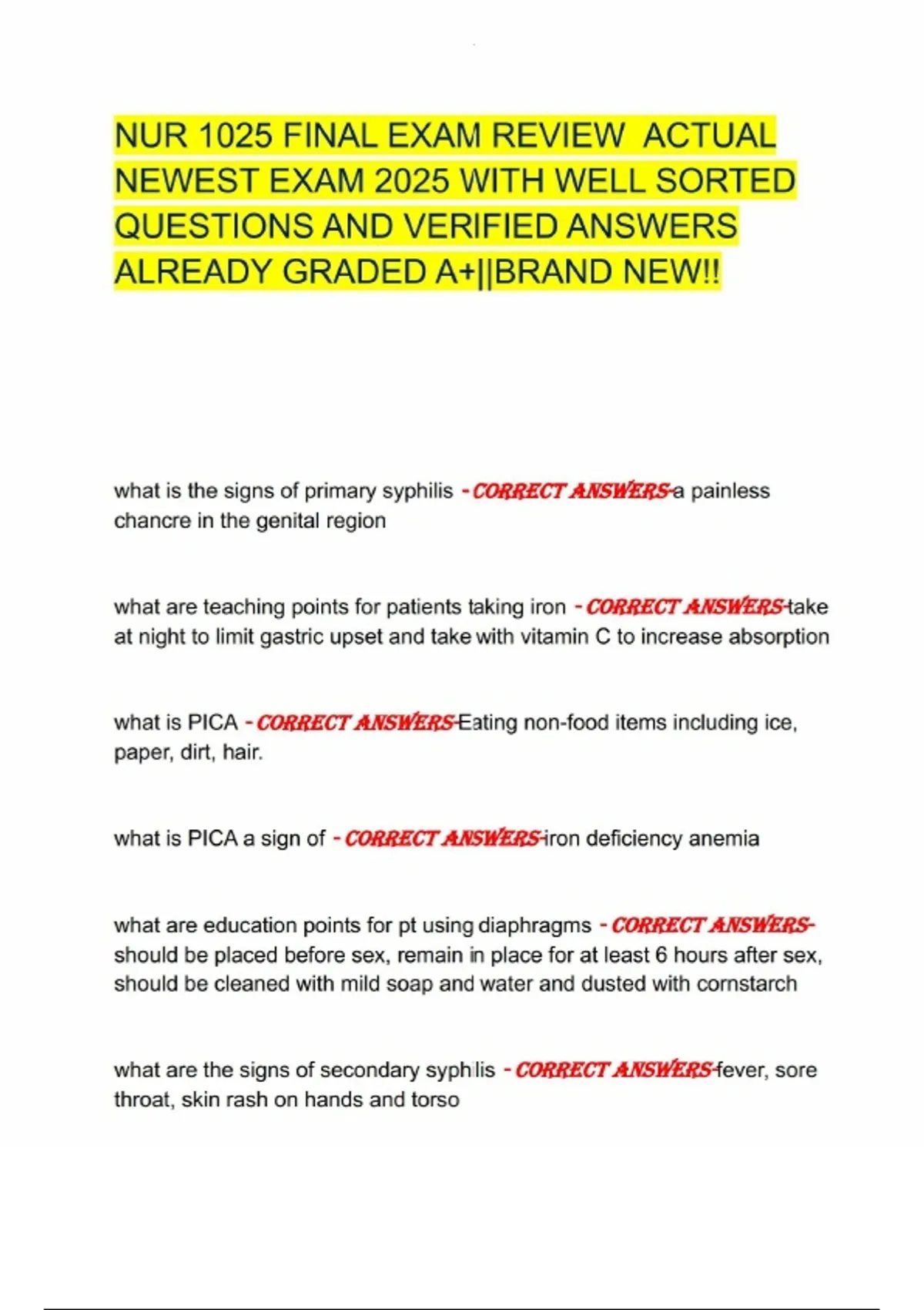 Nur 1025 final exam review actual newest exam 2025 with well sorted questions and verified answers Nur 1025 final exam review actual newest exam 2025 with well sorted questions and verified answers