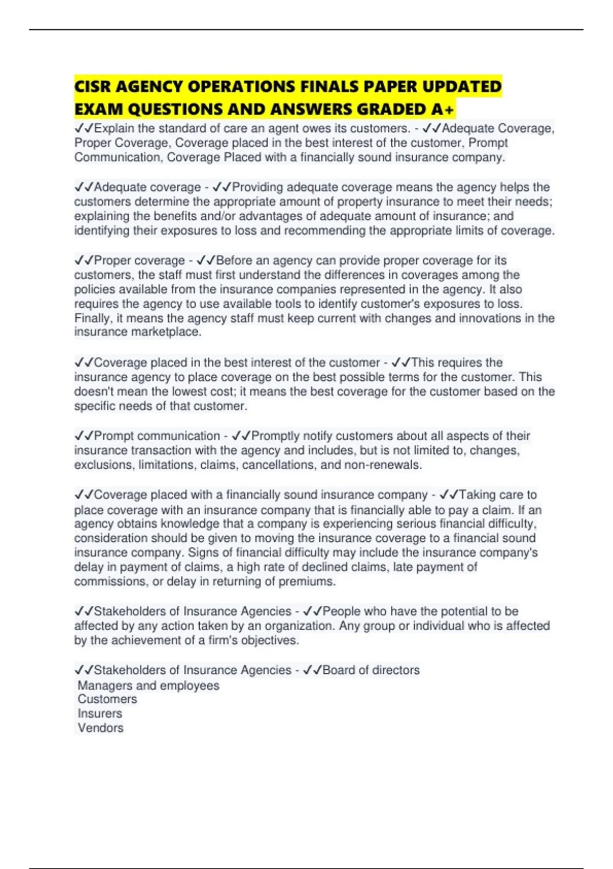 ✔✔Coverage placed in the best interest of the customer - ✔✔This requires the