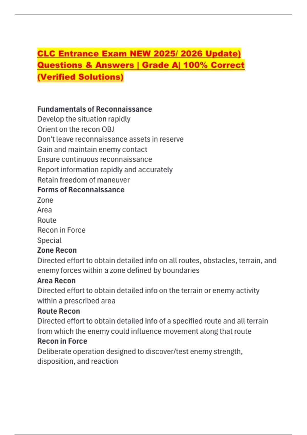 Directed effort to obtain detailed info on the terrain or enemy activity