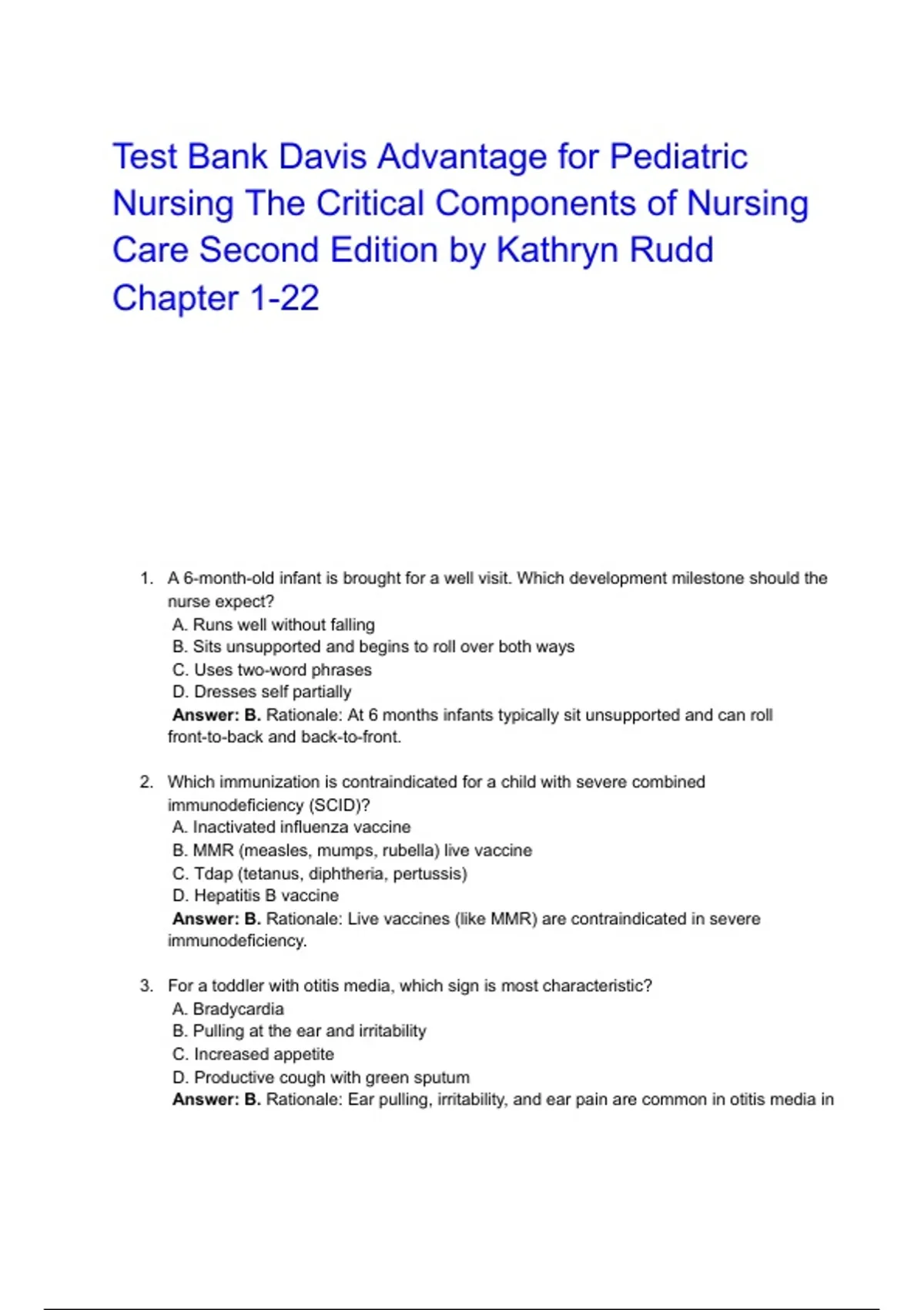 Answer: B. Rationale: At 6 months infants typically sit unsupported and can roll