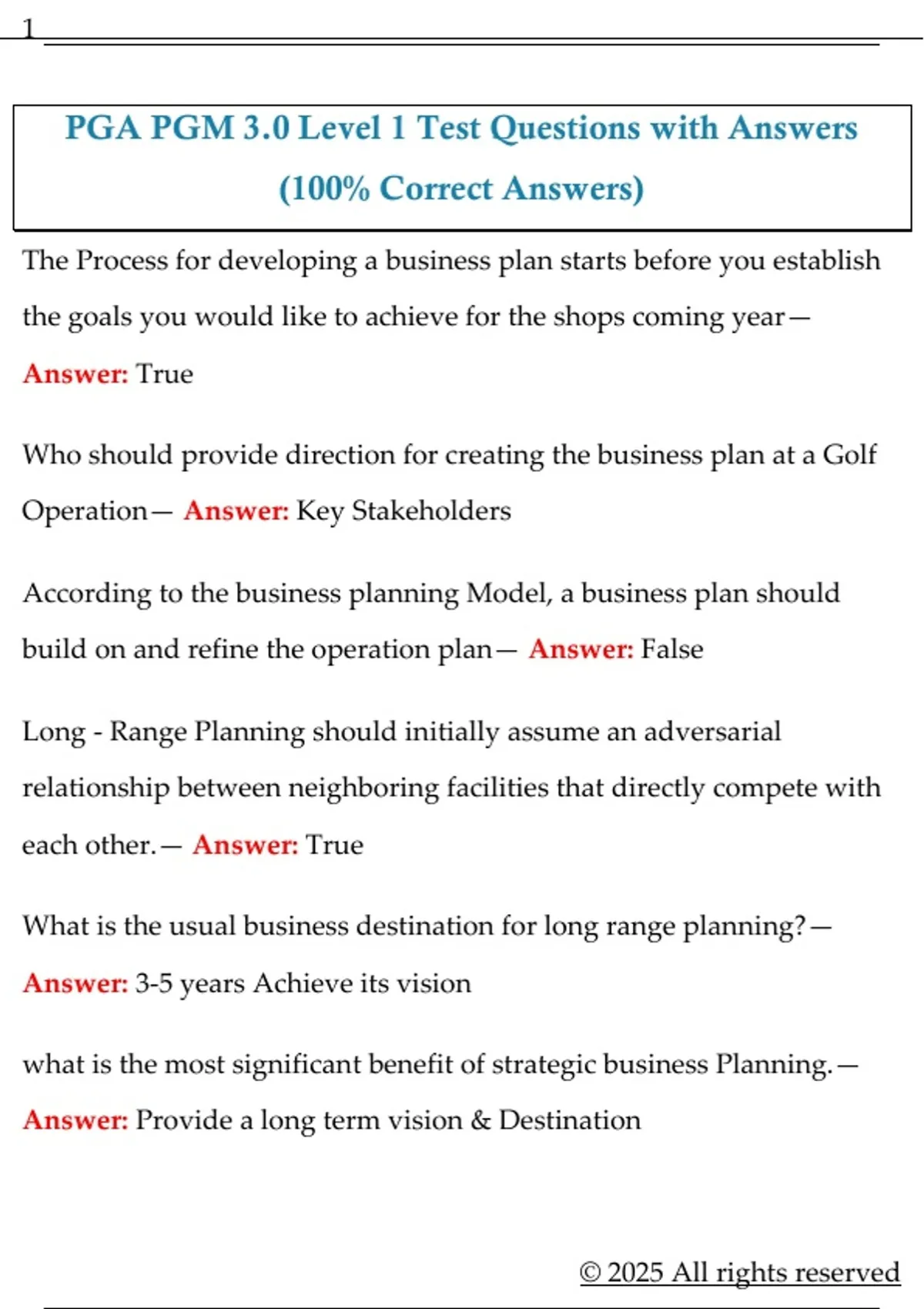 PGA PGM 3.0 Level 1 Test Questions with Answers