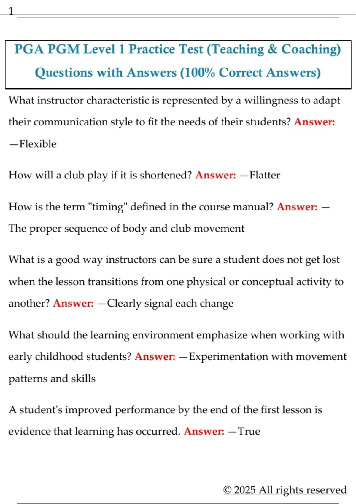 PGA PGM Level 1 Practice Test (Teaching & Coaching)