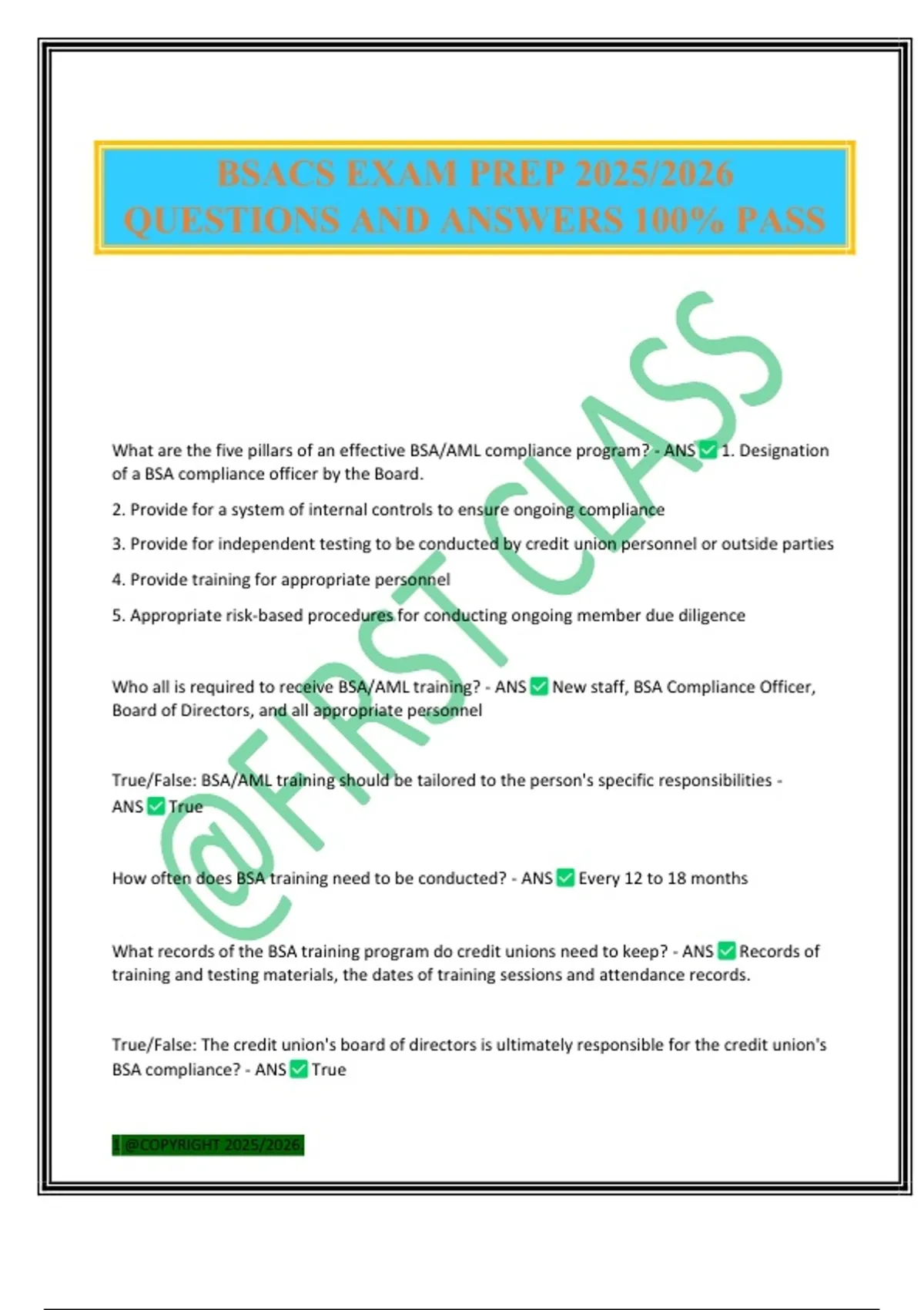 How often does BSA training need to be conducted? - ANS Every 12 to 18 months