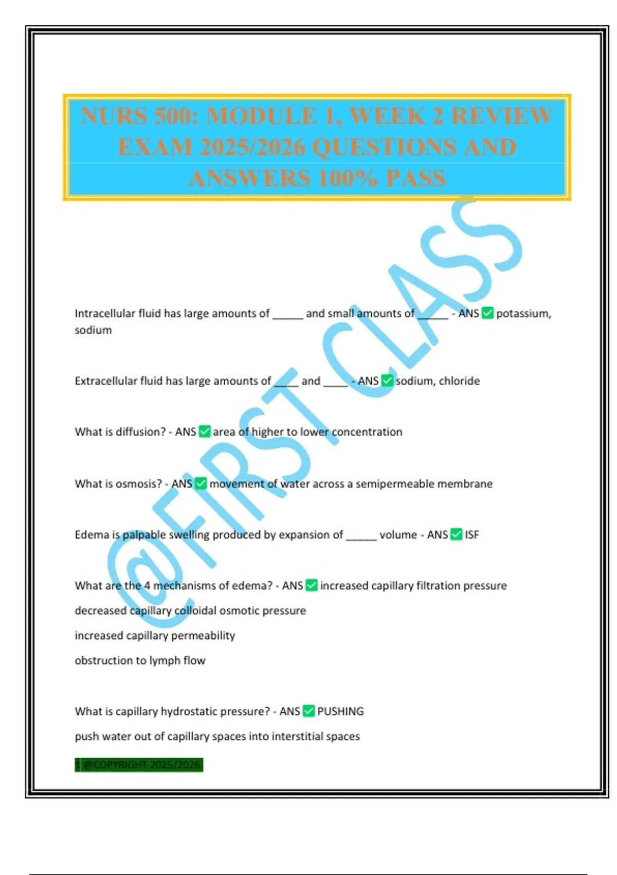 NURS 500: MODULE 1, WEEK 2 REVIEW EXAM 2025/2026 QUESTIONS AND ANSWERS 100% PASS