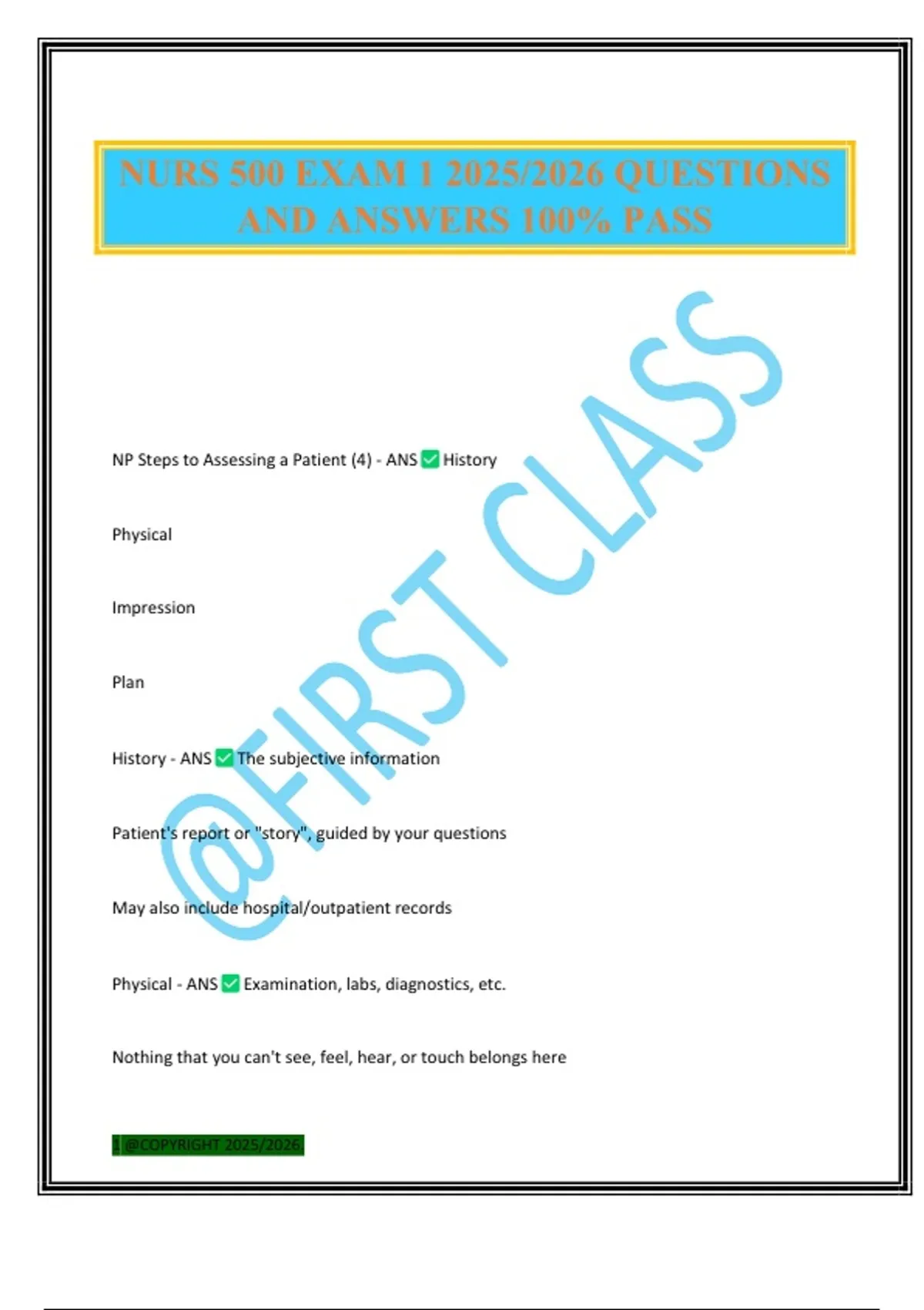 NURS 500 EXAM 1 2025/2026 QUESTIONS AND ANSWERS 100% PASS