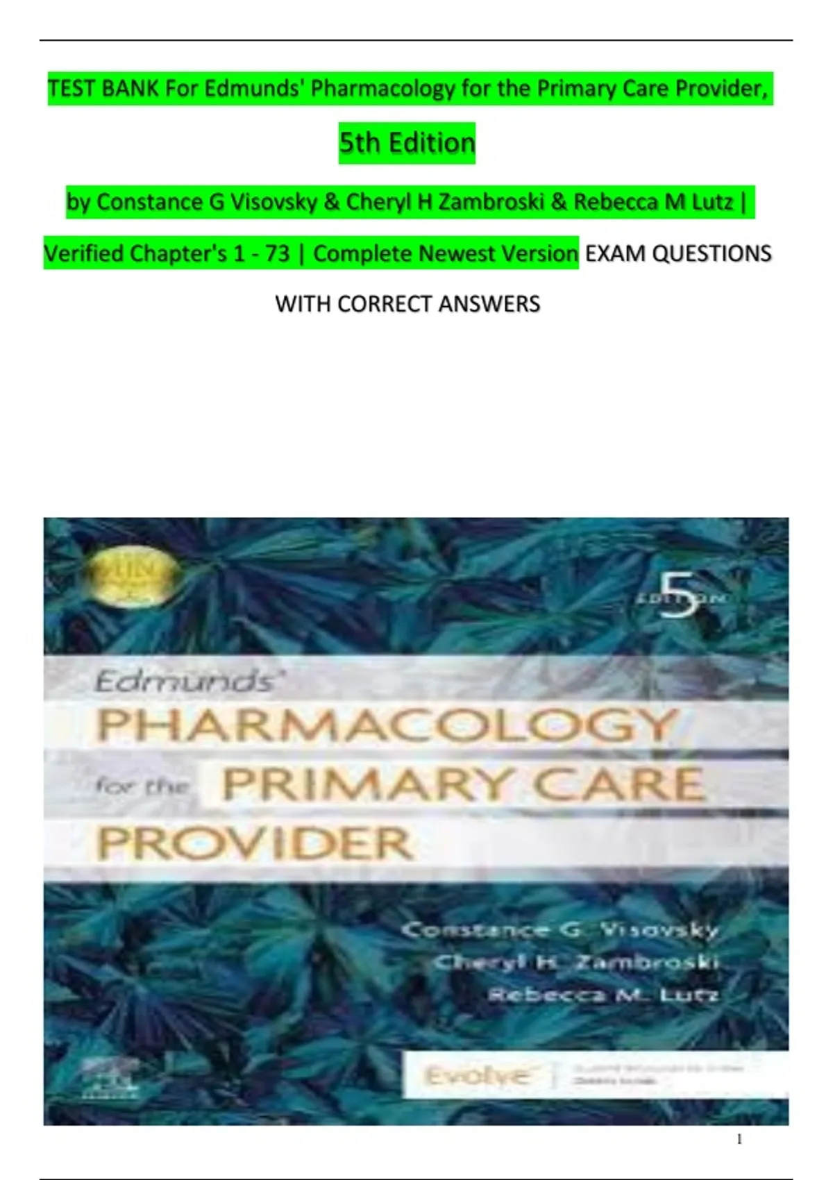 Test Bank - Pharmacology for the Primary Care Provider, 5th Edition (Edmunds), Chapter 1-73