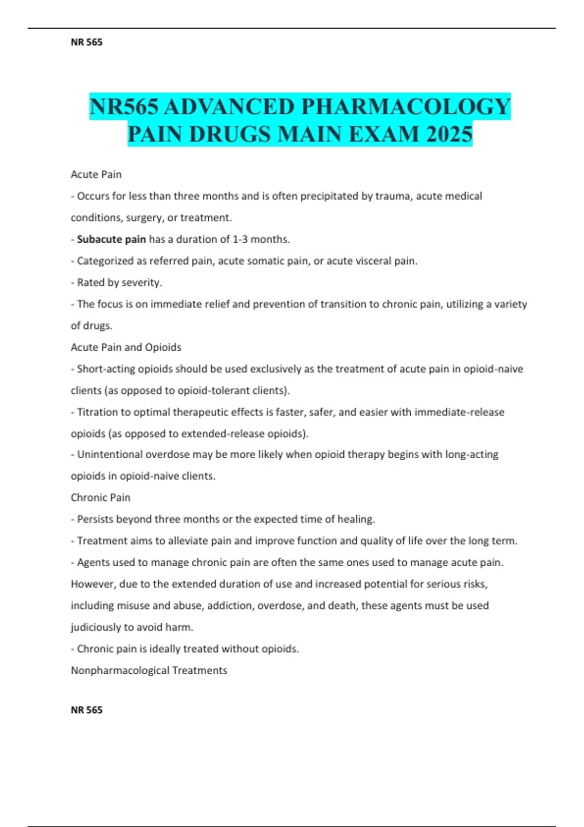 PAIN DRUGS MAIN EXAM 2025