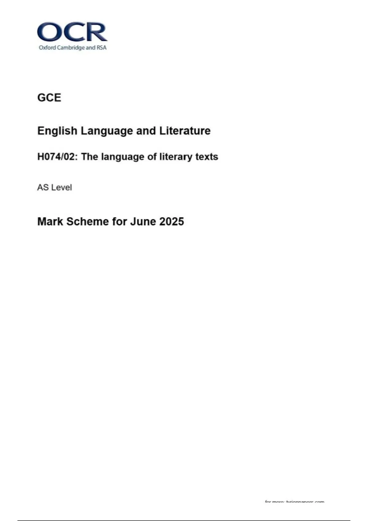 OCR AS Level English Language and Literature H074/02: The language of literary texts Mark Scheme for June 2025