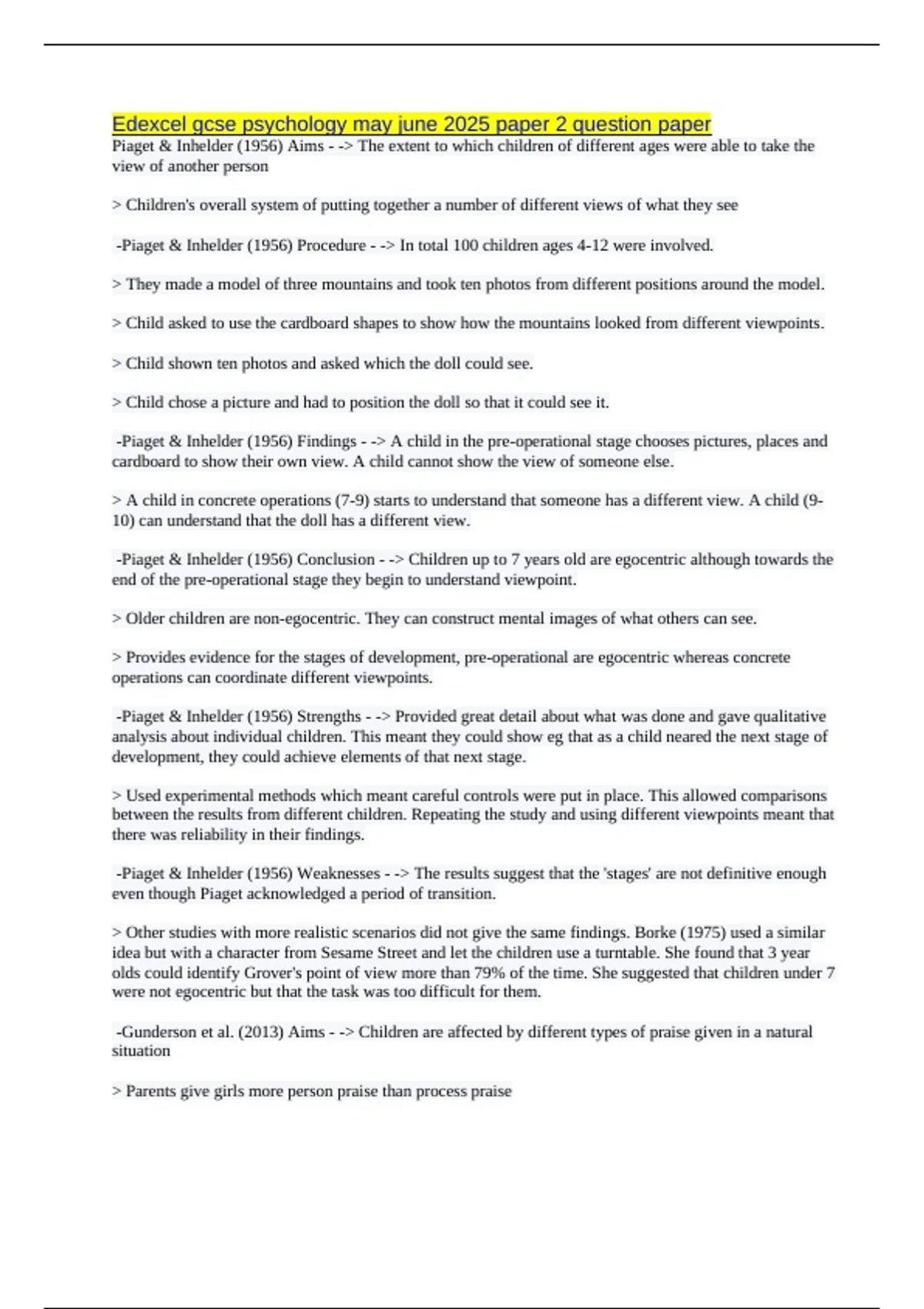 Edexcel gcse psychology may june 2025 paper 2 question paper