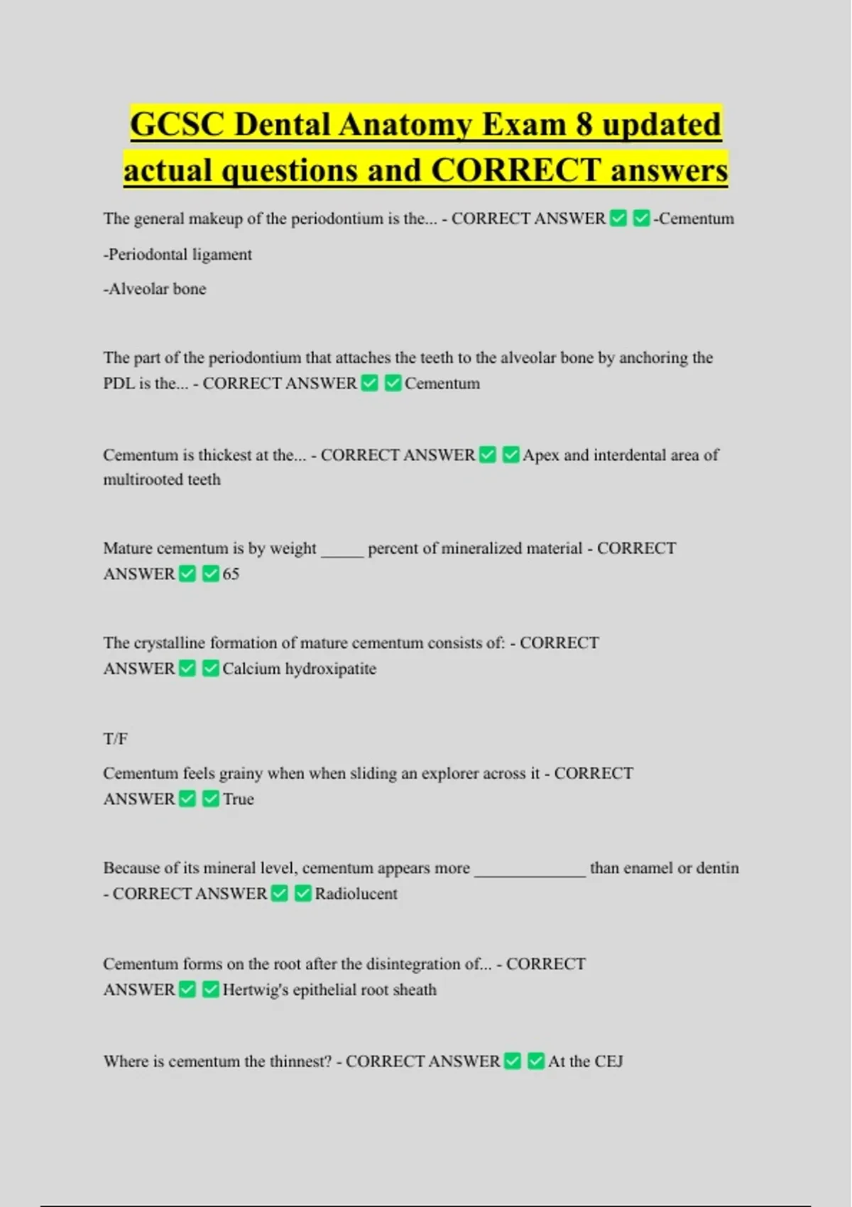ANSWER Cementogenesis
