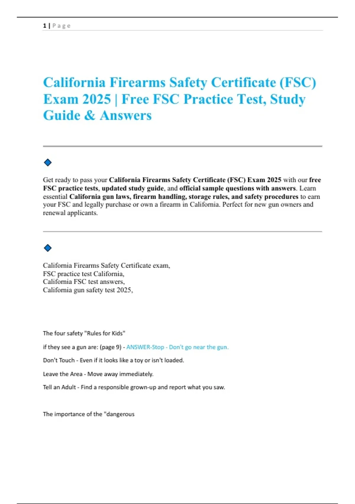 California Firearms Safety Certificate (FSC) Exam 2025 Free FSC Practice Test, Study Guide & Answers