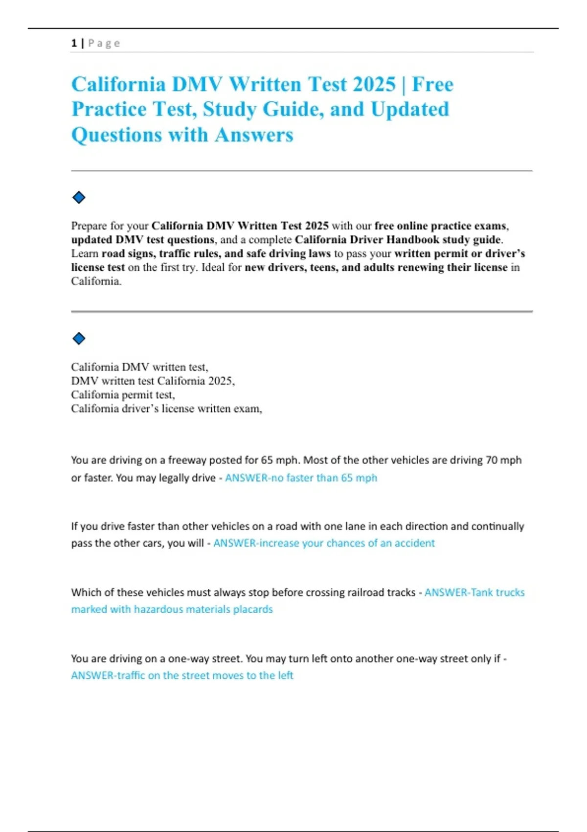 updated DMV test questions, and a complete California Driver Handbook study guide.