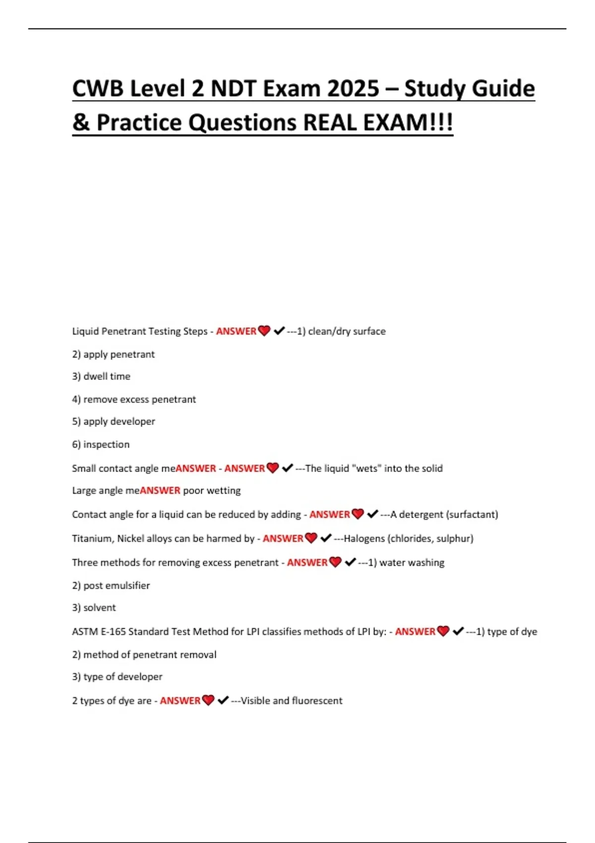 Liquid Penetrant Testing Steps - ANSWER ✔---1) clean/dry surface