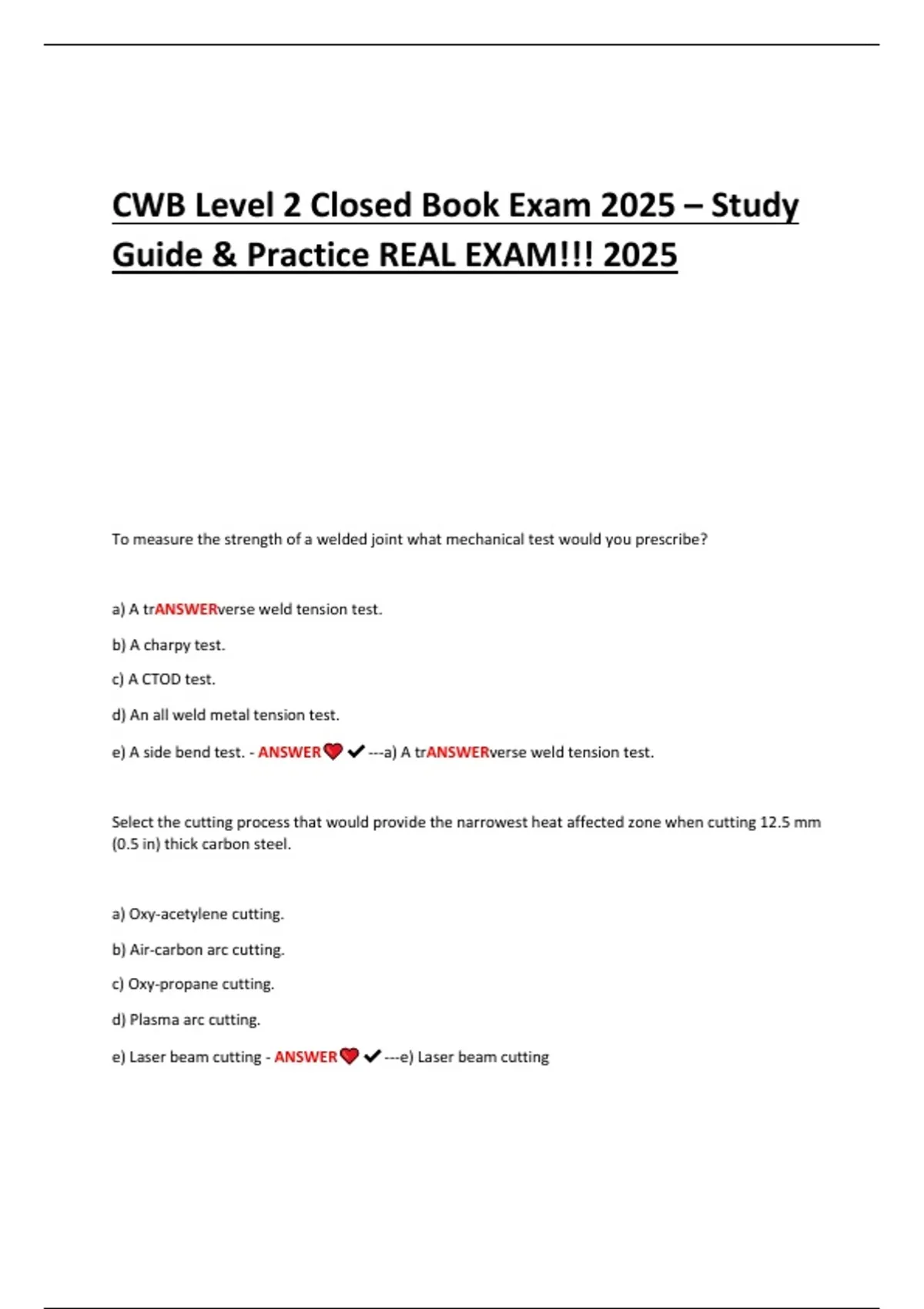 e) A side bend test. - ANSWER ✔---a) A trANSWERverse weld tension test.