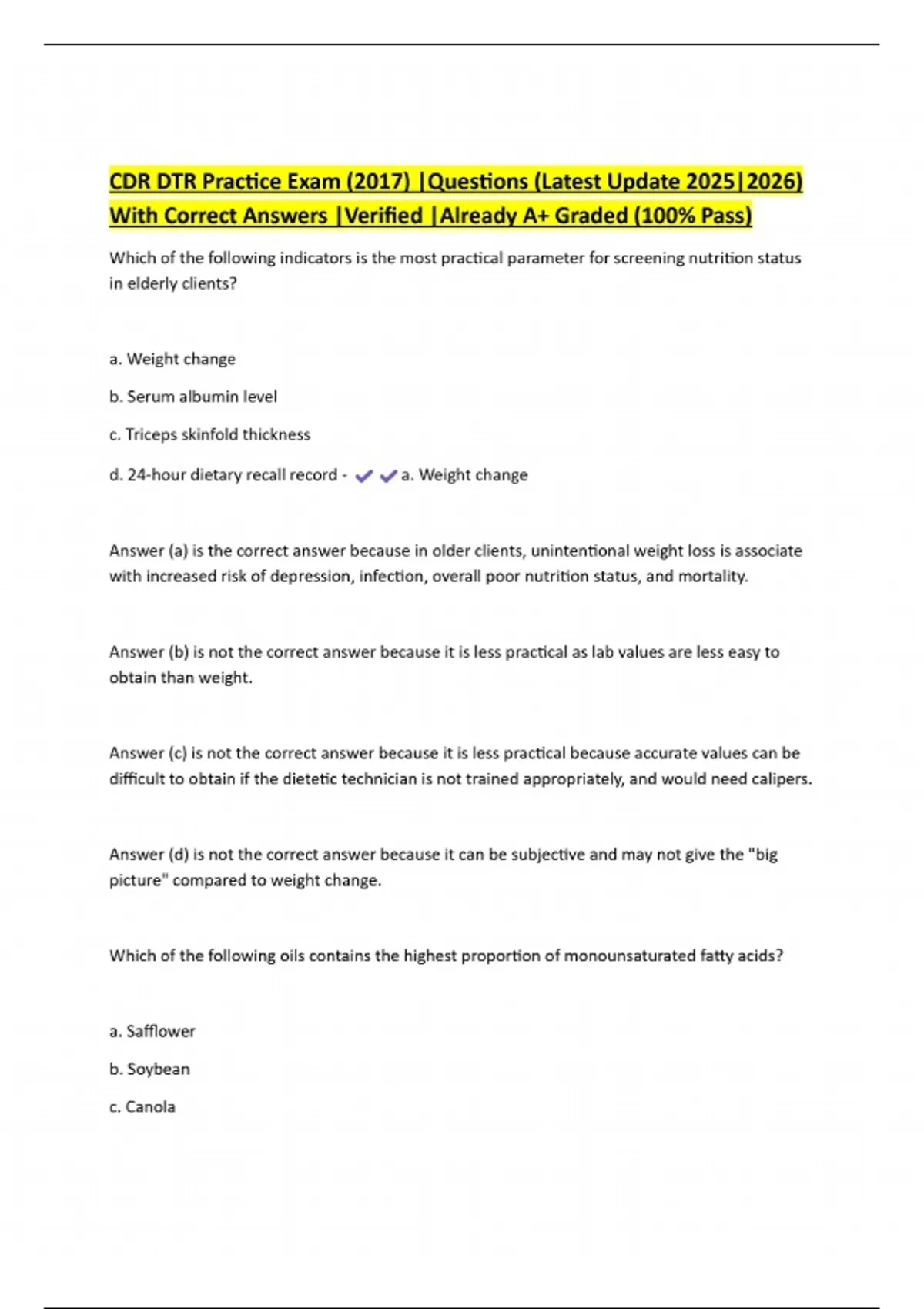 CDR DTR Practice Exam (2017) |Questions (Latest Update 2025|2026) With Correct Answers |Verified |Already A+ Graded (100% Pass)