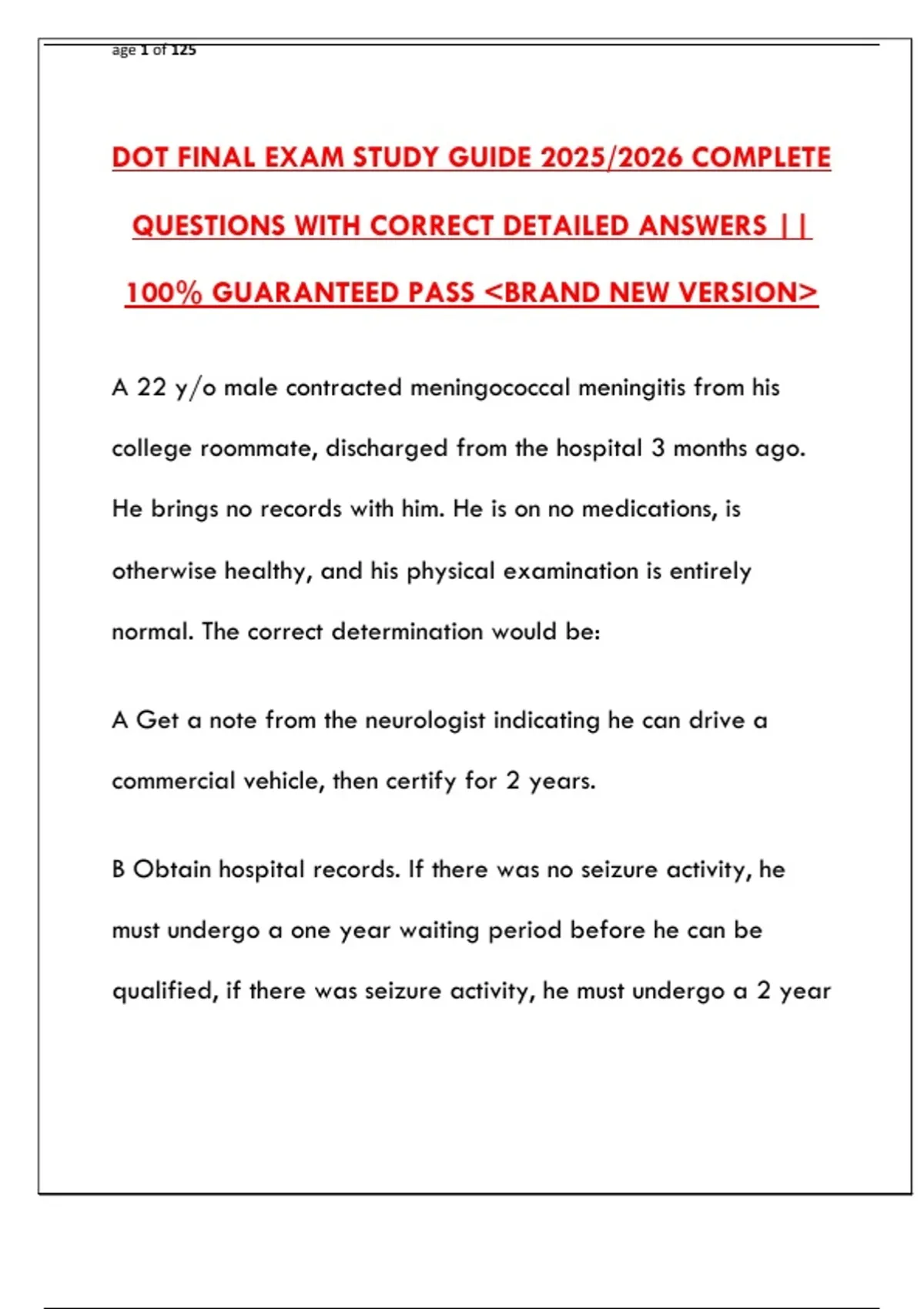 DOT FINAL EXAM STUDY GUIDE 2025/2026 COMPLETE