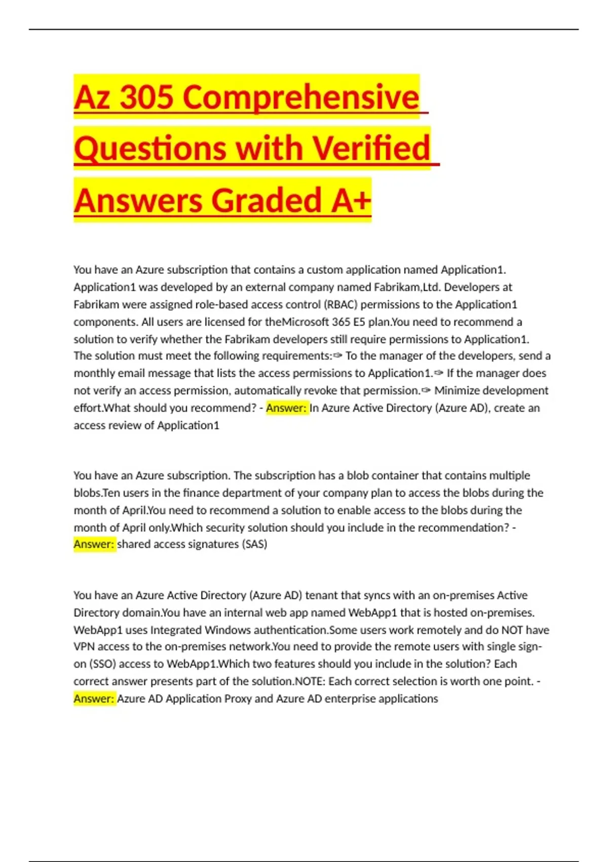 Az 305 Comprehensive Questions with Verified Answers Graded A+