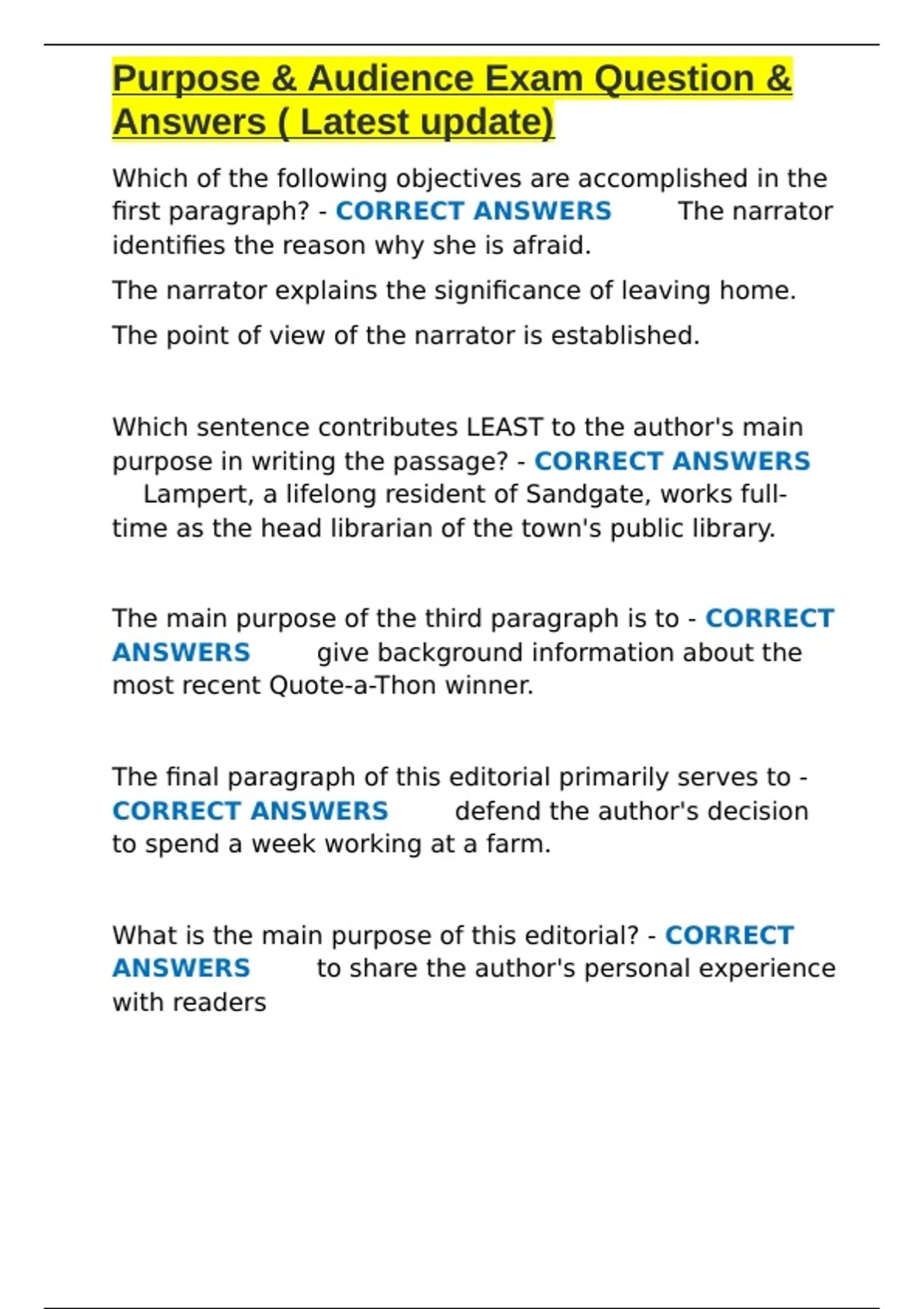Purpose & Audience Exam Question & Answers ( Latest update).docx