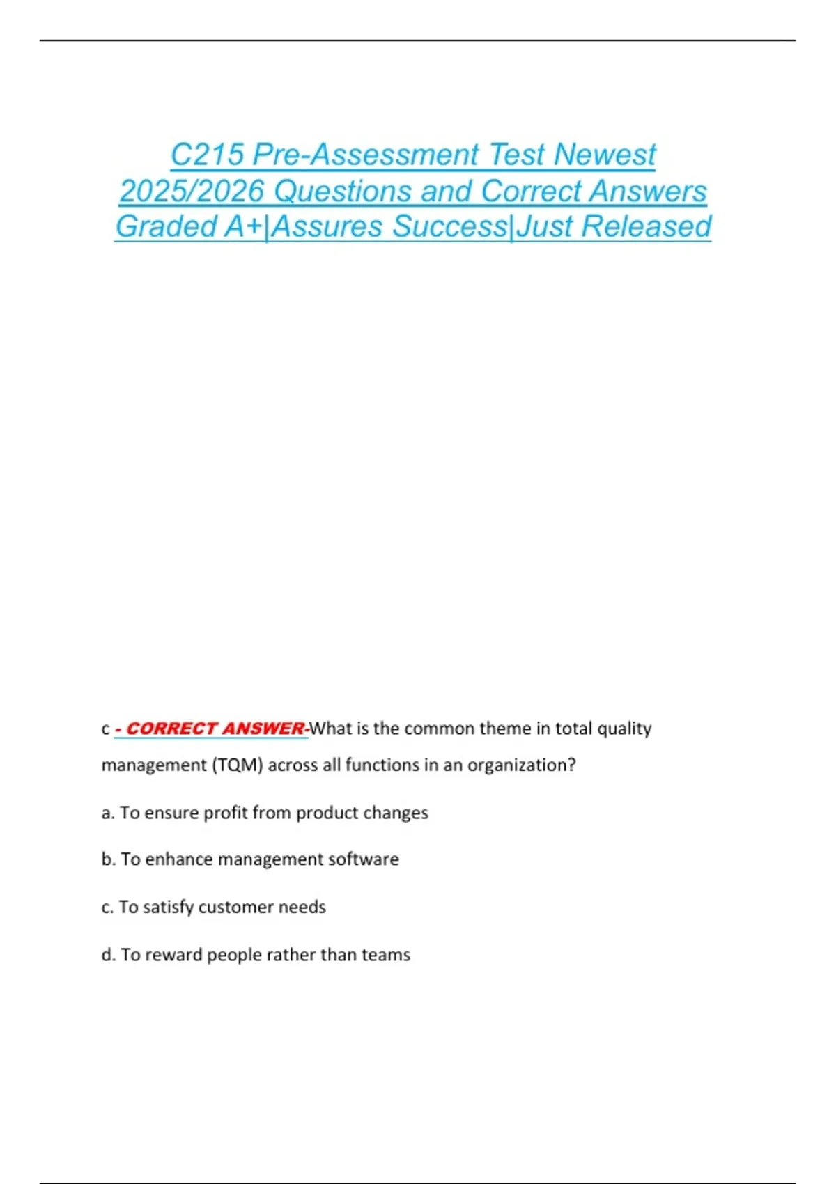 a - CORRECT ANSWER-Which total quality management (TQM) process