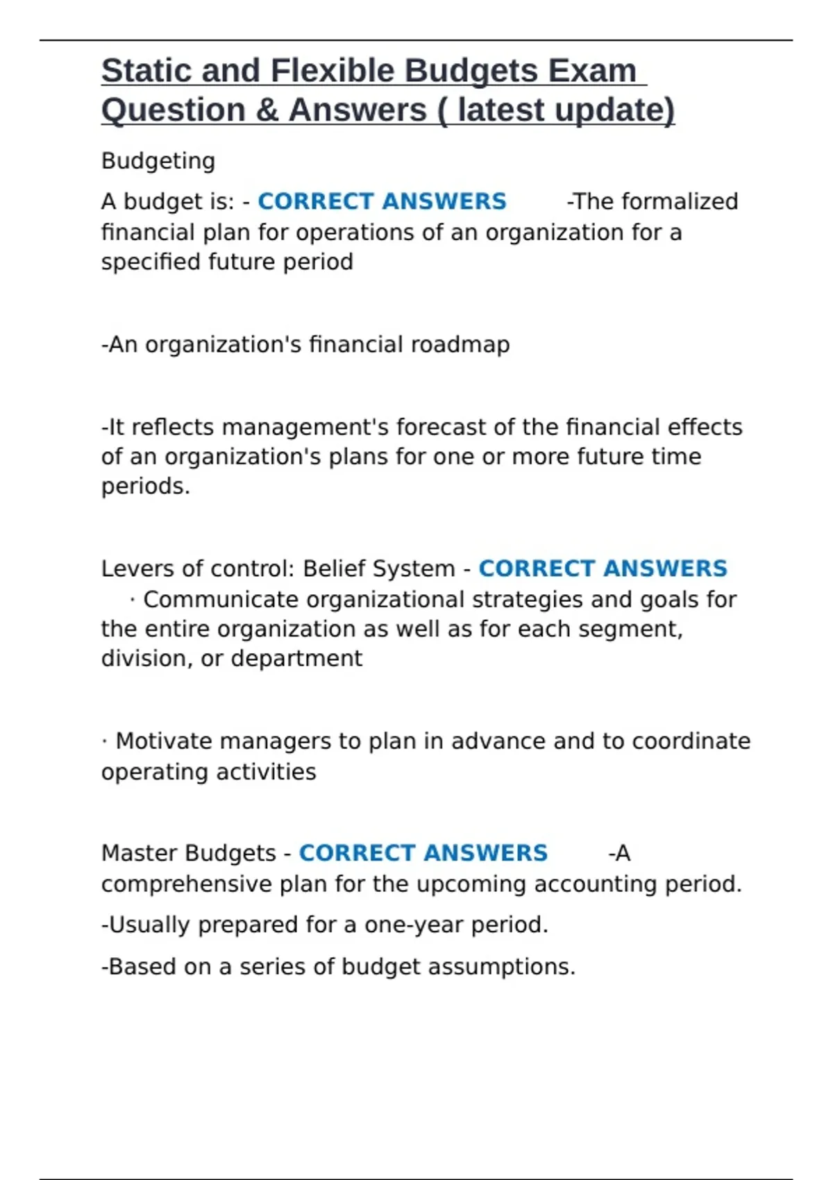 Master Budgets - CORRECT ANSWERS ✅-A