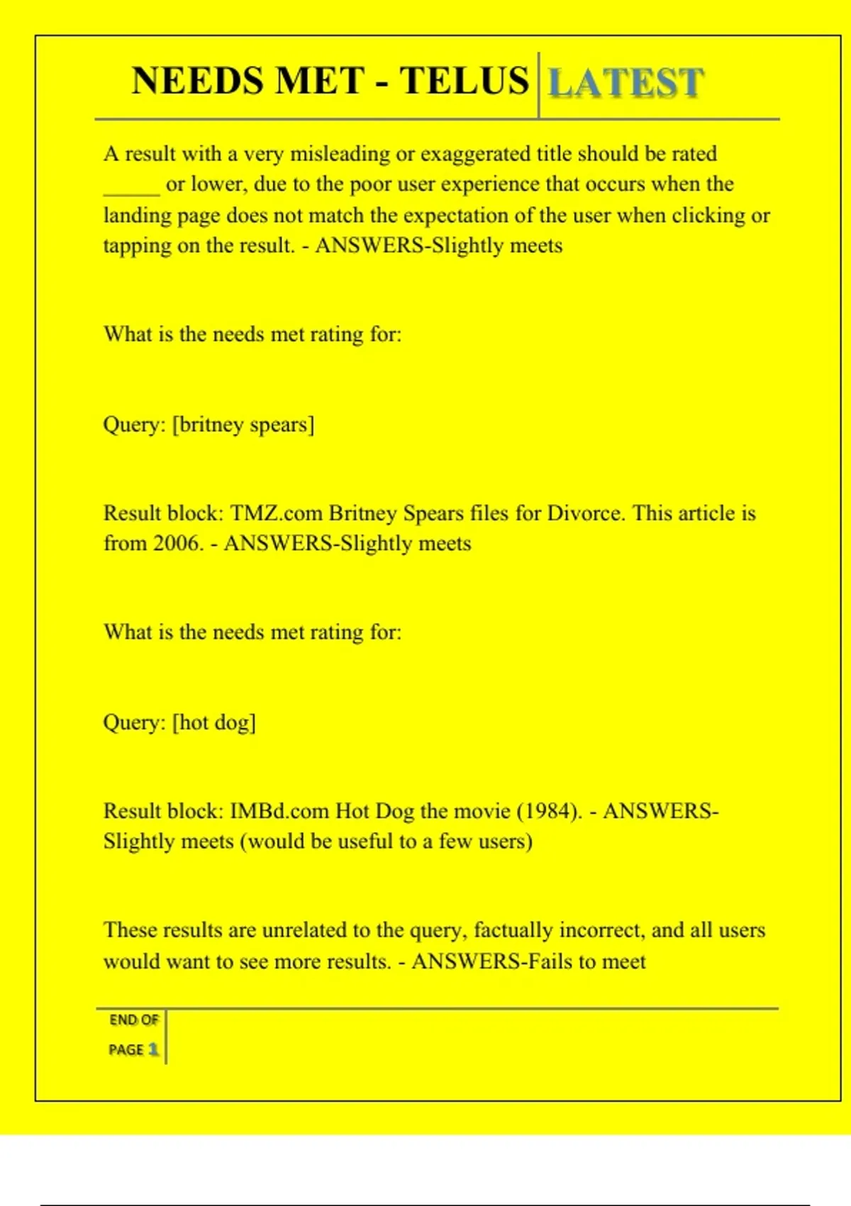 NEEDS MET - TELUS QUESTIONS AND ANSWERS 2025