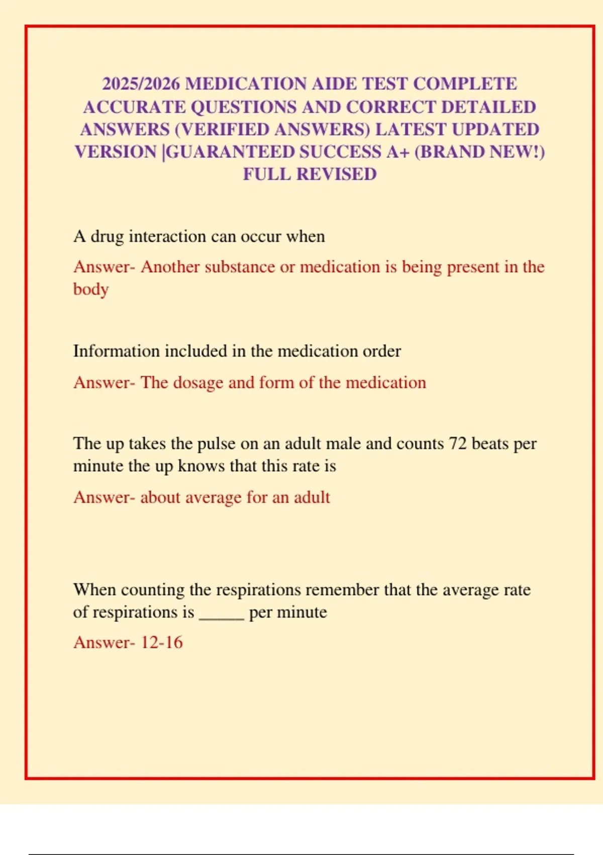 ACCURATE QUESTIONS AND CORRECT DETAILED