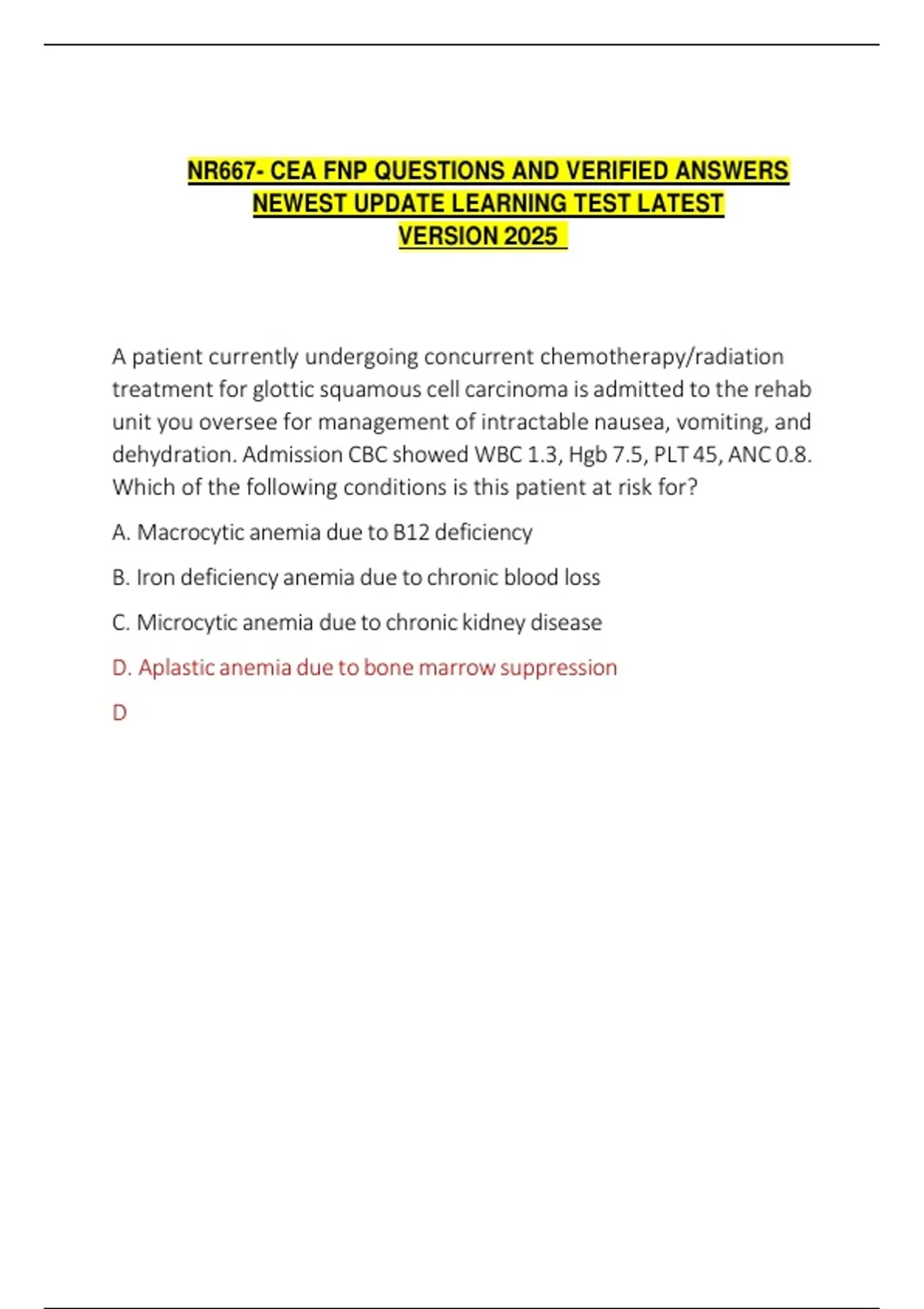 NR667- CEA FNP QUESTIONS AND VERIFIED ANSWERS