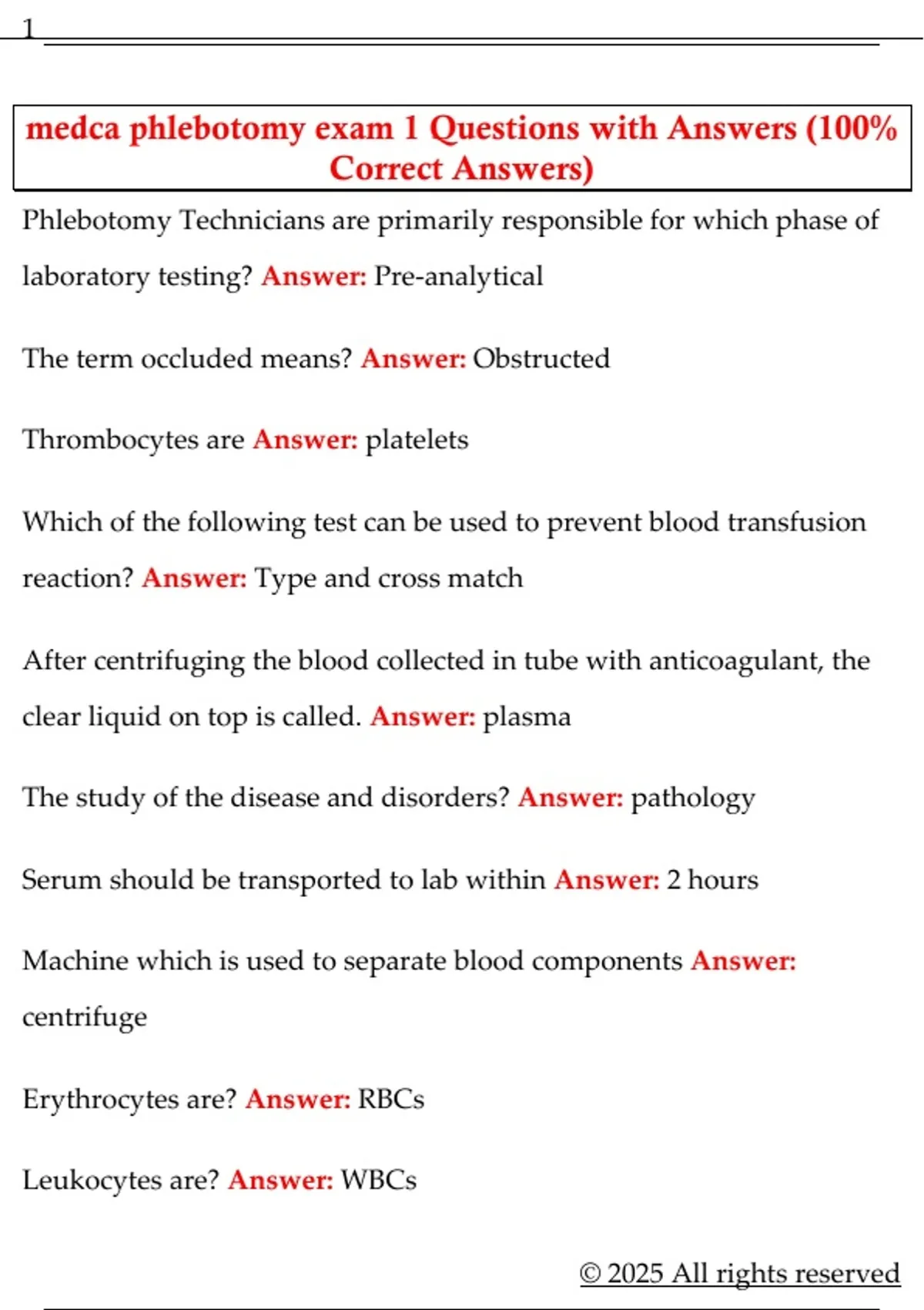 medca phlebotomy exam 1 Questions with Answers (100%
