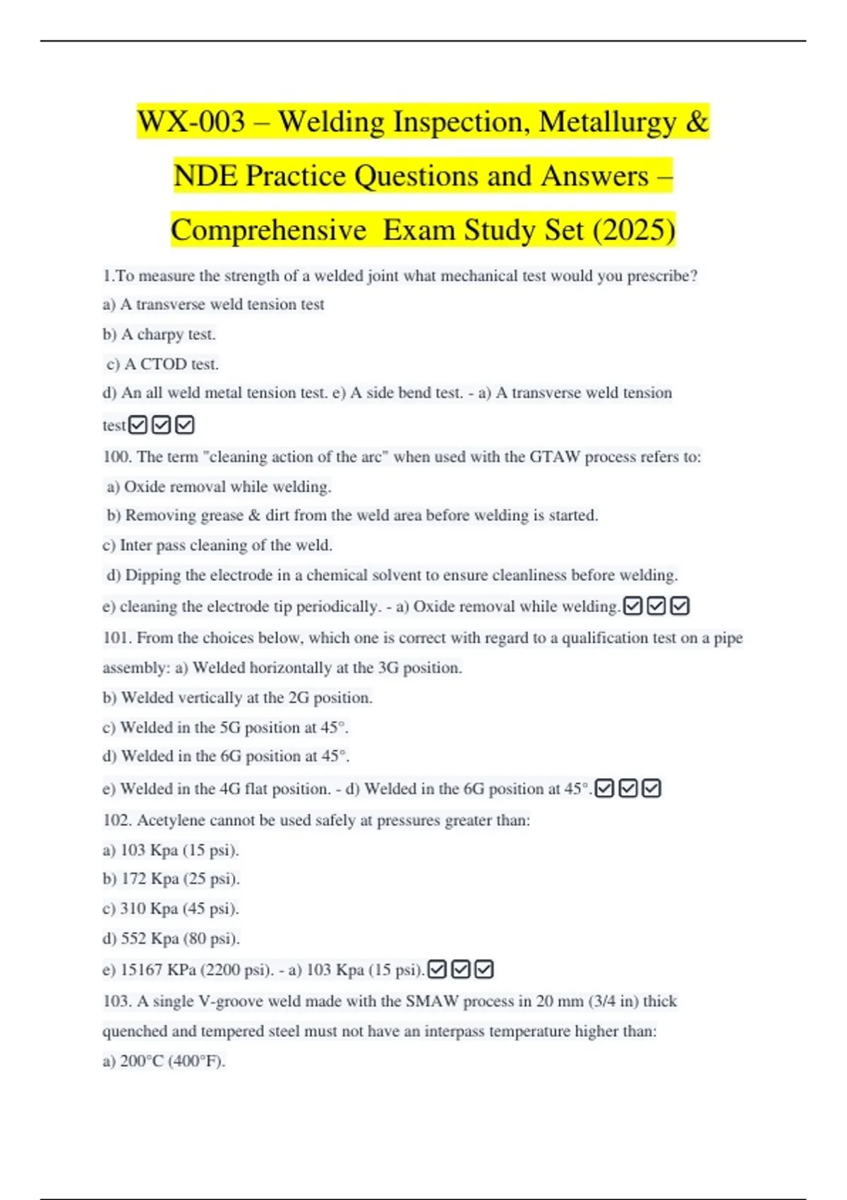 101. From the choices below, which one is correct with regard to a qualification test on a pipe