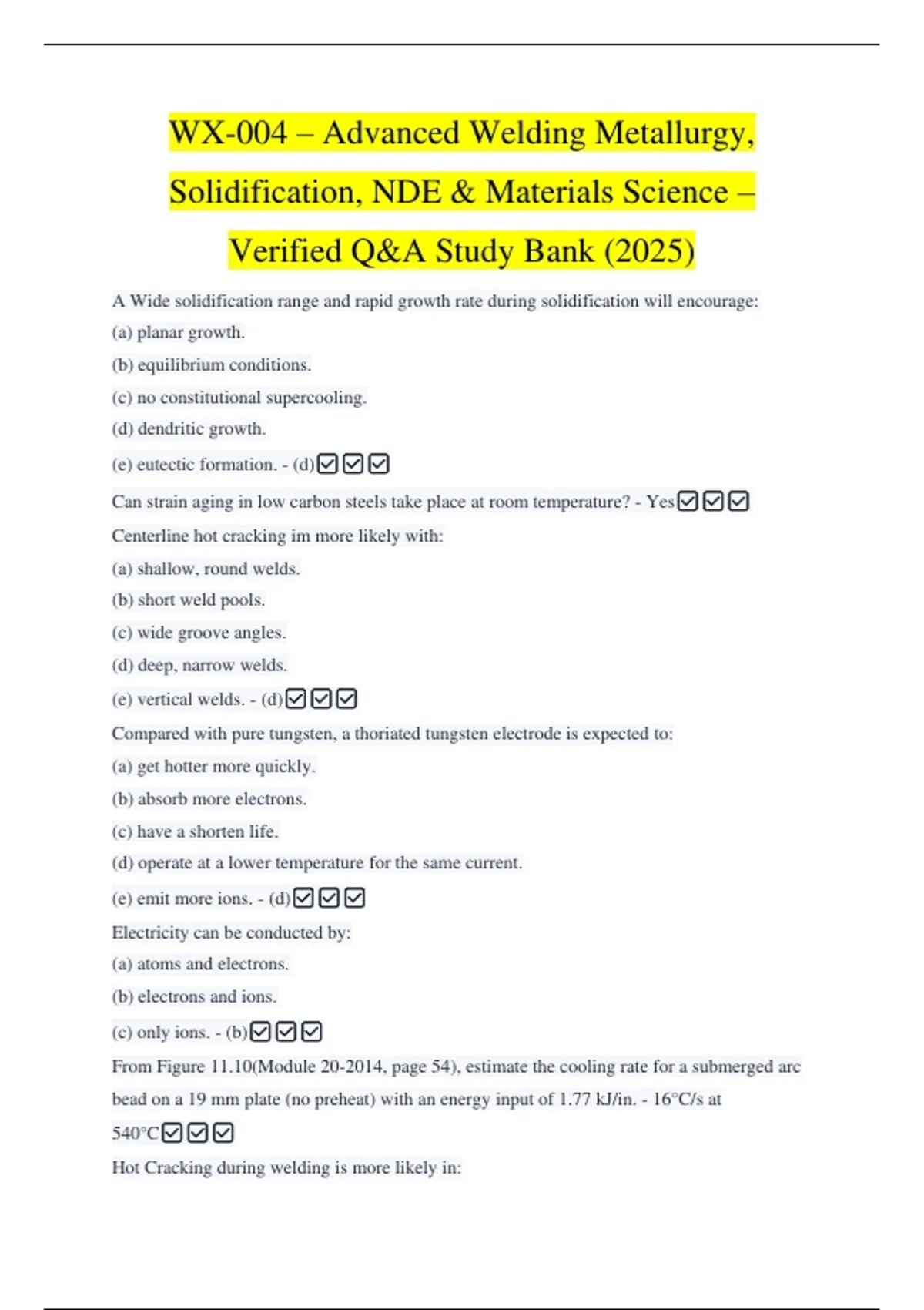 WX-004 – Advanced Welding Metallurgy, Solidification, NDE & Materials Science – Verified Q&A Study Bank (2024)