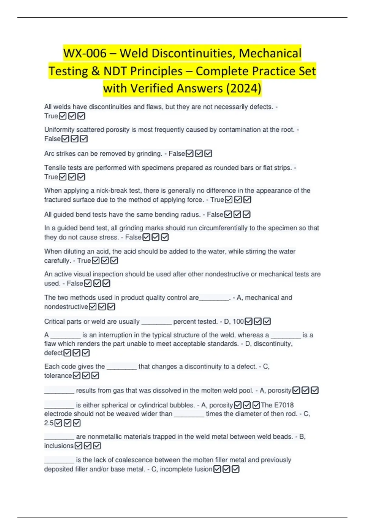 Critical parts or weld are usually ________ percent tested. - D, 100✅✅✅