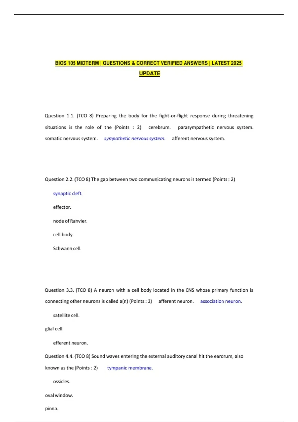 Question 1.1. (TCO 8) Preparing the body for the fight-or-flight response during threatening