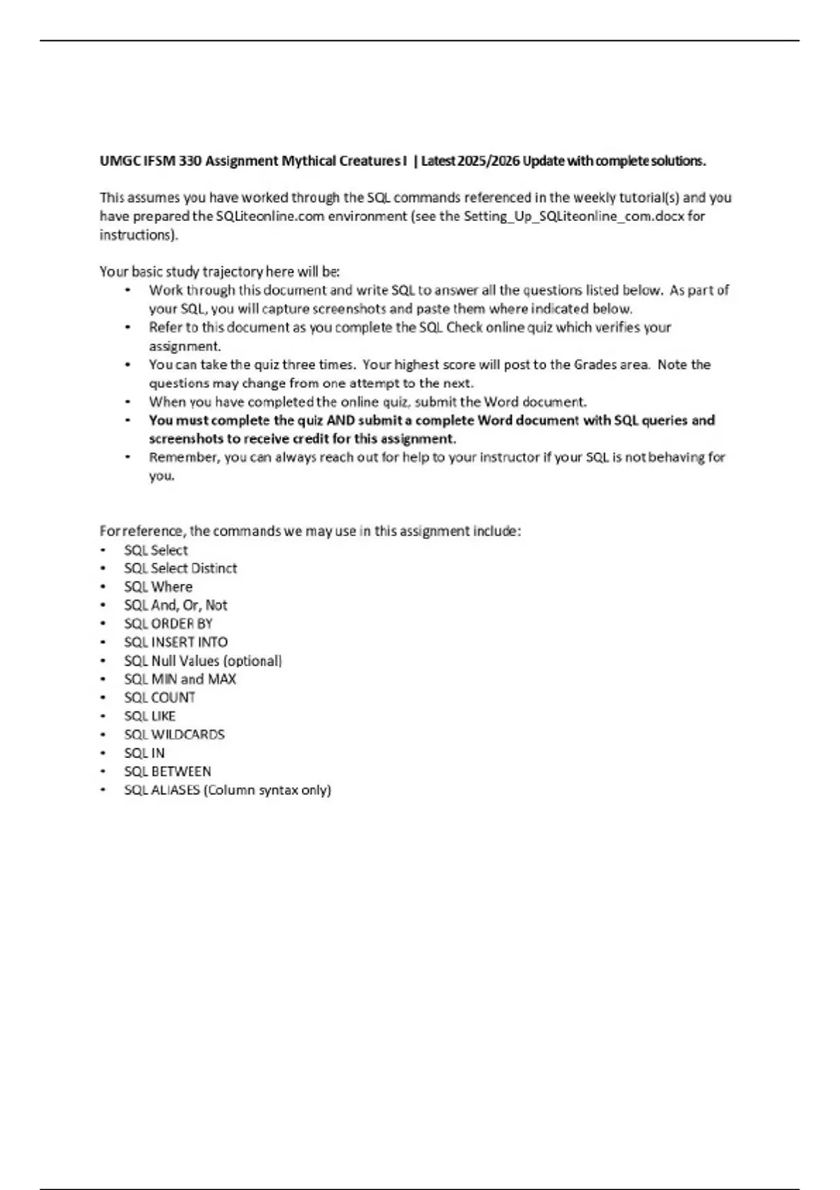 Summary UMGC IFSM 330 Assignment Mythical Creatures I | Latest 2025/2026 Update with complete solutions.