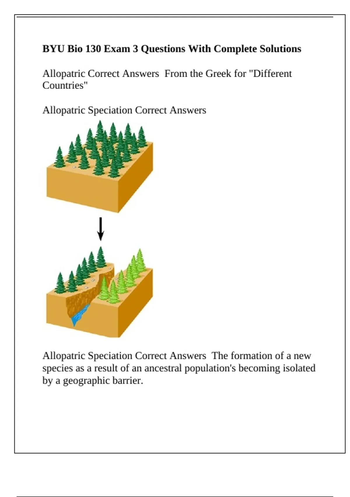 BYU Bio 130 Exam 3 Questions With Complete Solutions