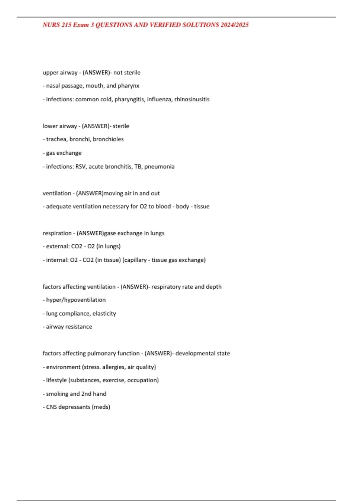 NURS 215 Exam 3 QUESTIONS AND VERIFIED SOLUTIONS 2024/2025