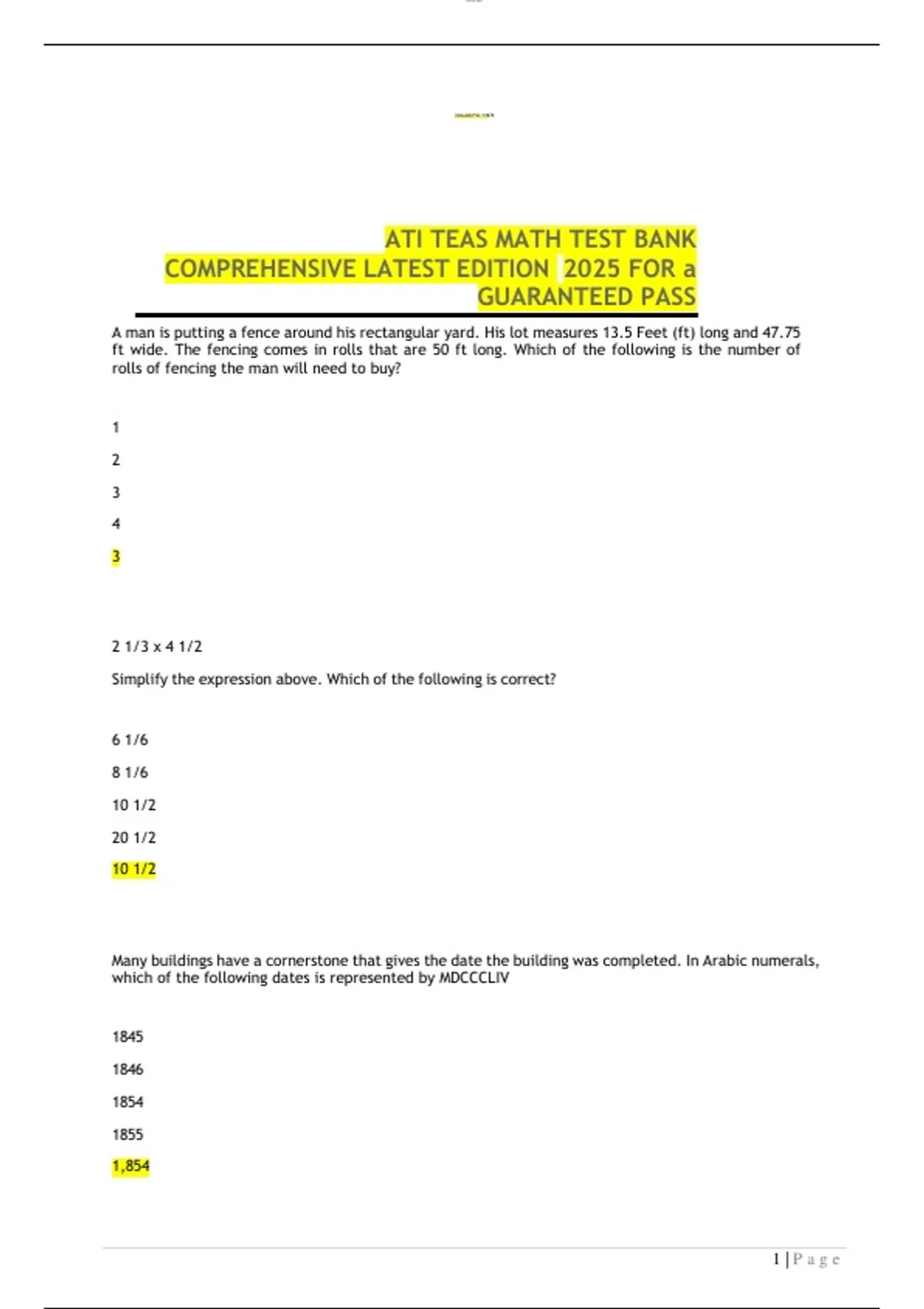 The ATI TEAS Math Test Bank 2025 (Latest Edition) provides comprehensive, up-to-date math practice questions with accurate answers and explanations. Designed to mirror the real TEAS exam, this resource strengthens core math skills, builds test-taking confidence, and supports a guaranteed pass. Ideal for nursing and allied health applicants seeking reliable, high-quality TEAS Math preparation for 2025.
