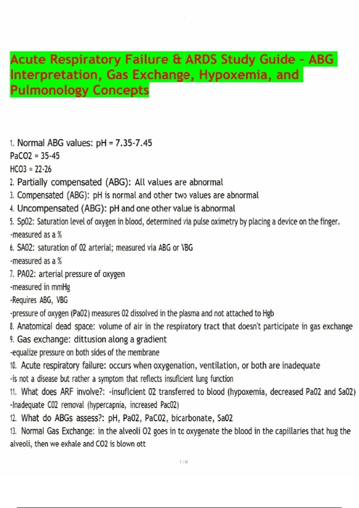 Acute Respiratory Failure & ARDS Study Guide – ABG Interpretation, Gas Exchange, Hypoxemia, and Pulmonology Concepts.pdf
