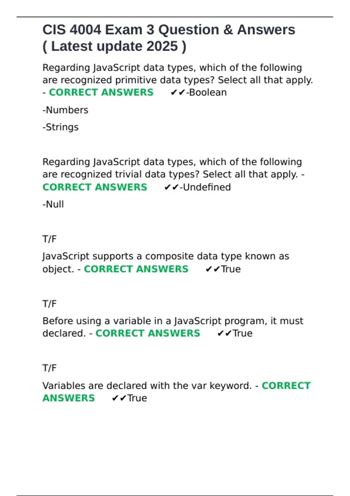 CIS 4004 Exam 3 Question & Answers ( Latest update 2025 ).docx