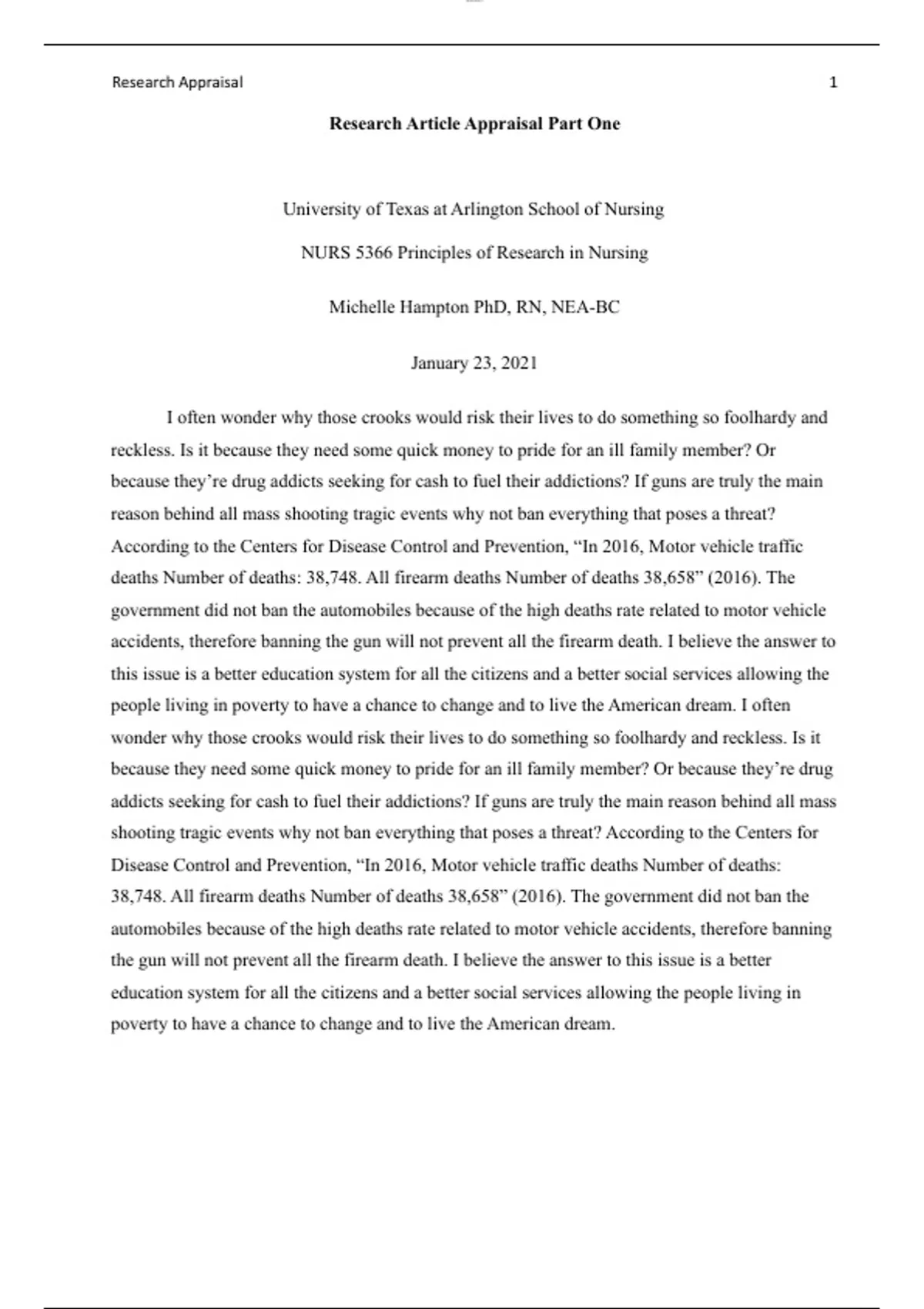 Research Article Appraisal Part One
