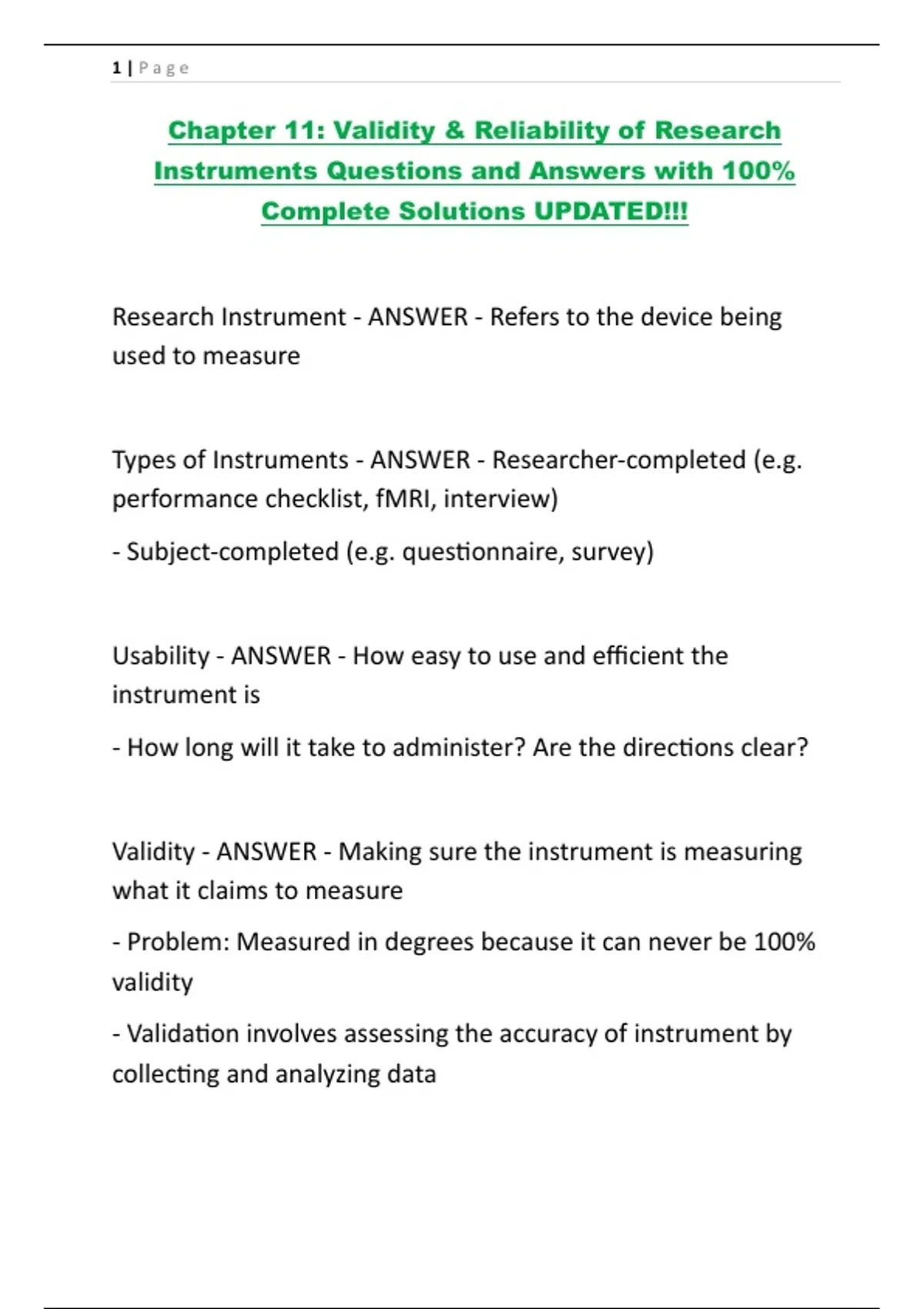 Chapter 11 Validity & Reliability of Research Instruments Questions and Answers with 100% complete Solutions