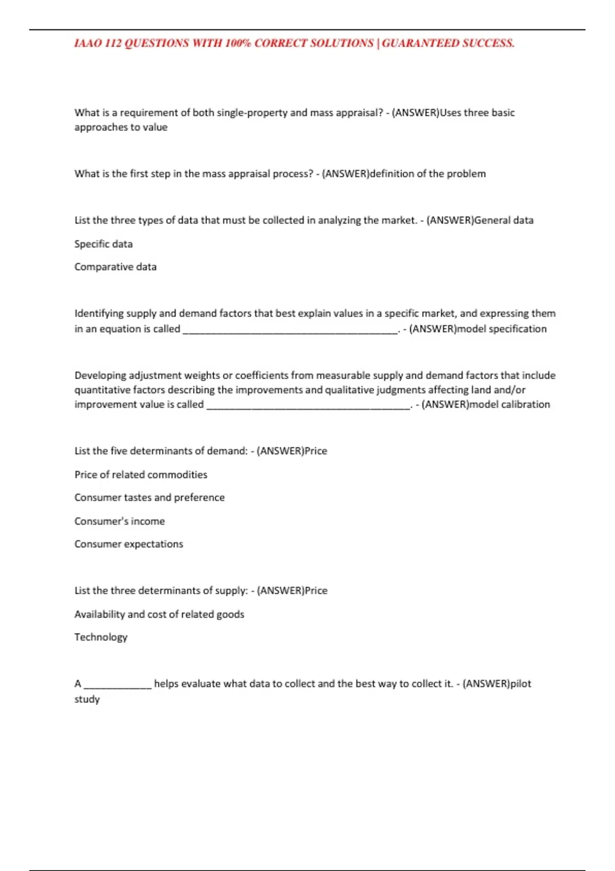 , IAAO 112 QUESTIONS WITH 100% CORRECT SOLUTIONS | GUARANTEED SUCCESS.