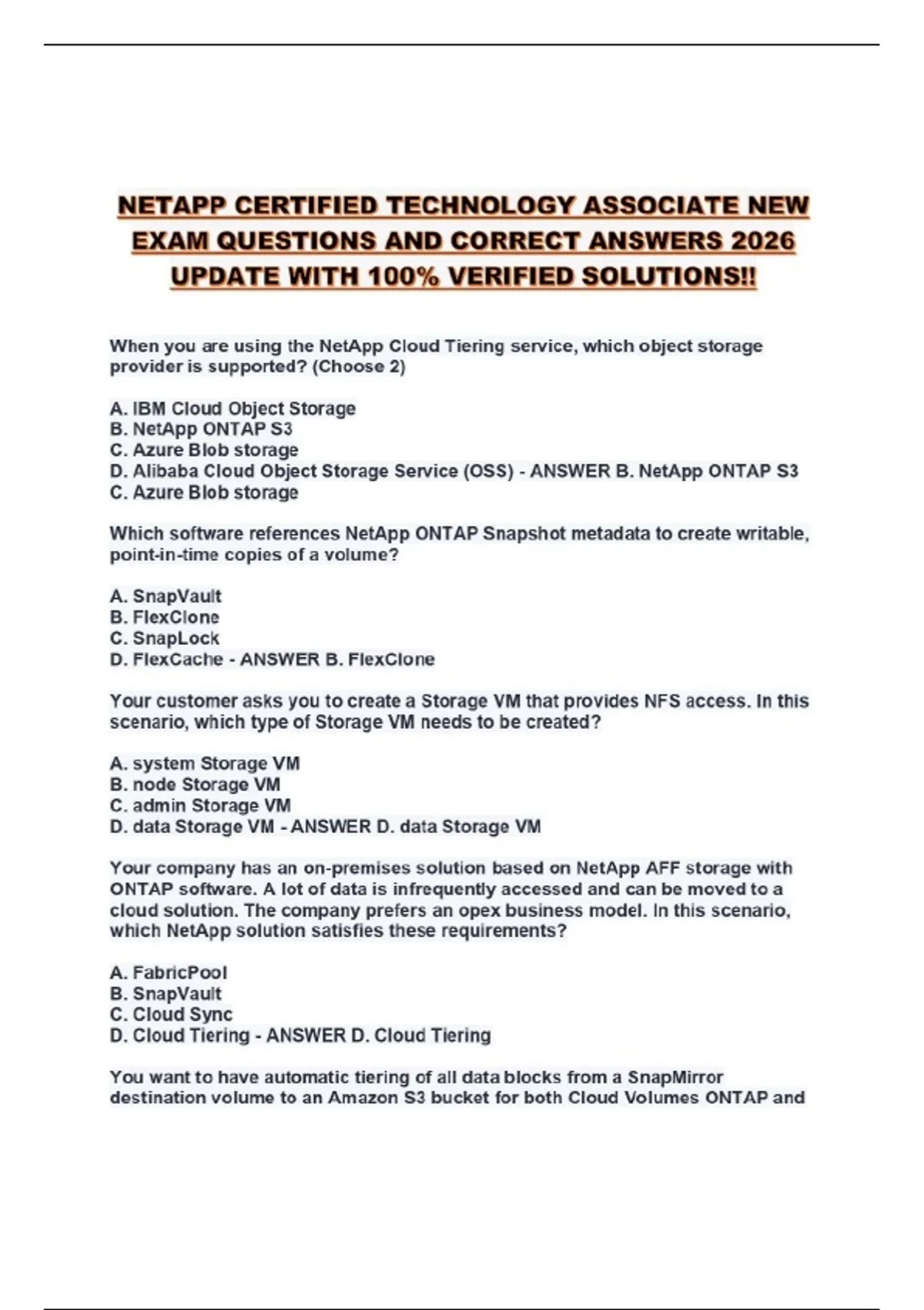 NETAPP CERTIFIED TECHNOLOGY ASSOCIATE NEW EXAM QUESTIONS AND CORRECT ANSWERS 2026 UPDATE WITH 100% VERIFIED SOLUTIONS!!...
