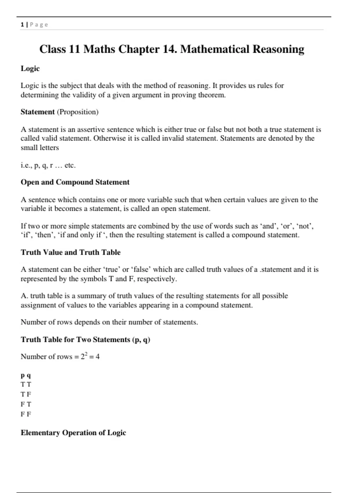 Class 11 Maths Chapter 14. Mathematical Reasoning