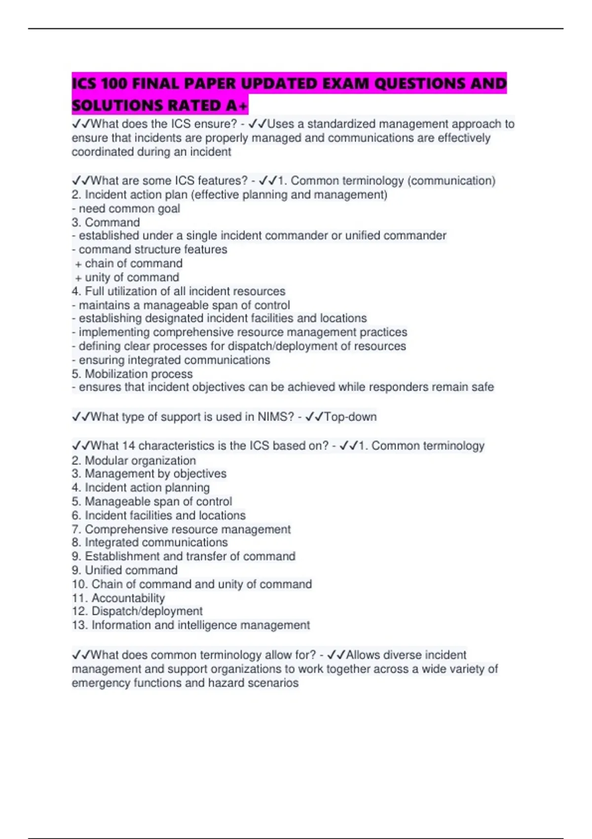 ICS 100 FINAL PAPER UPDATED EXAM QUESTIONS AND SOLUTIONS RATED A+