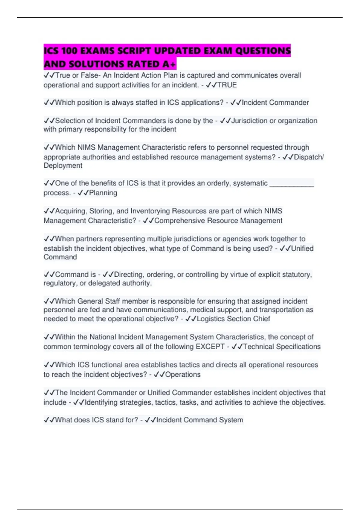 ICS 100 EXAMS SCRIPT UPDATED EXAM QUESTIONS AND SOLUTIONS RATED A+