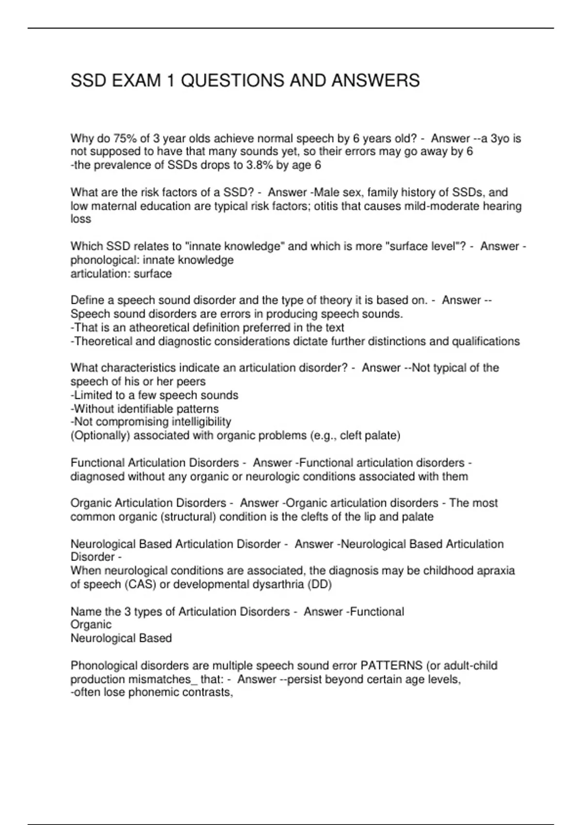 Functional Articulation Disorders - Answer -Functional articulation disorders -