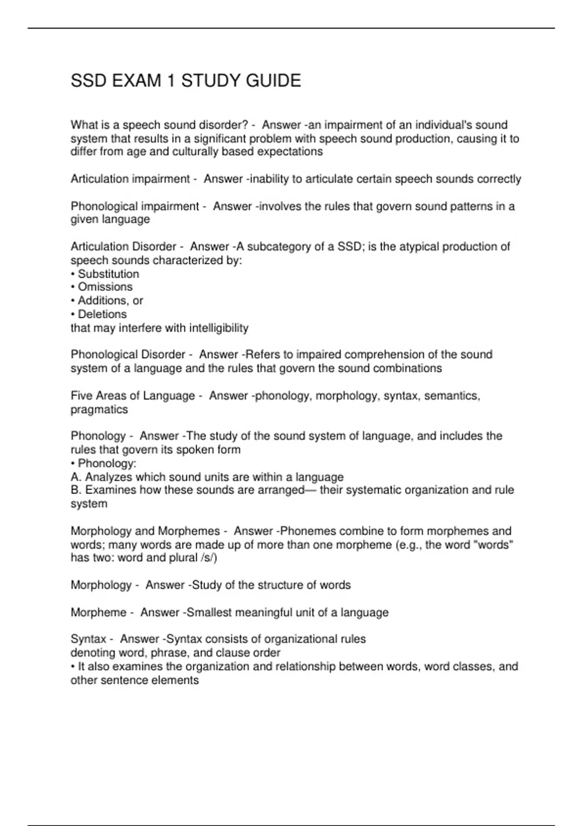What is a speech sound disorder? - Answer -an impairment of an individual's sound