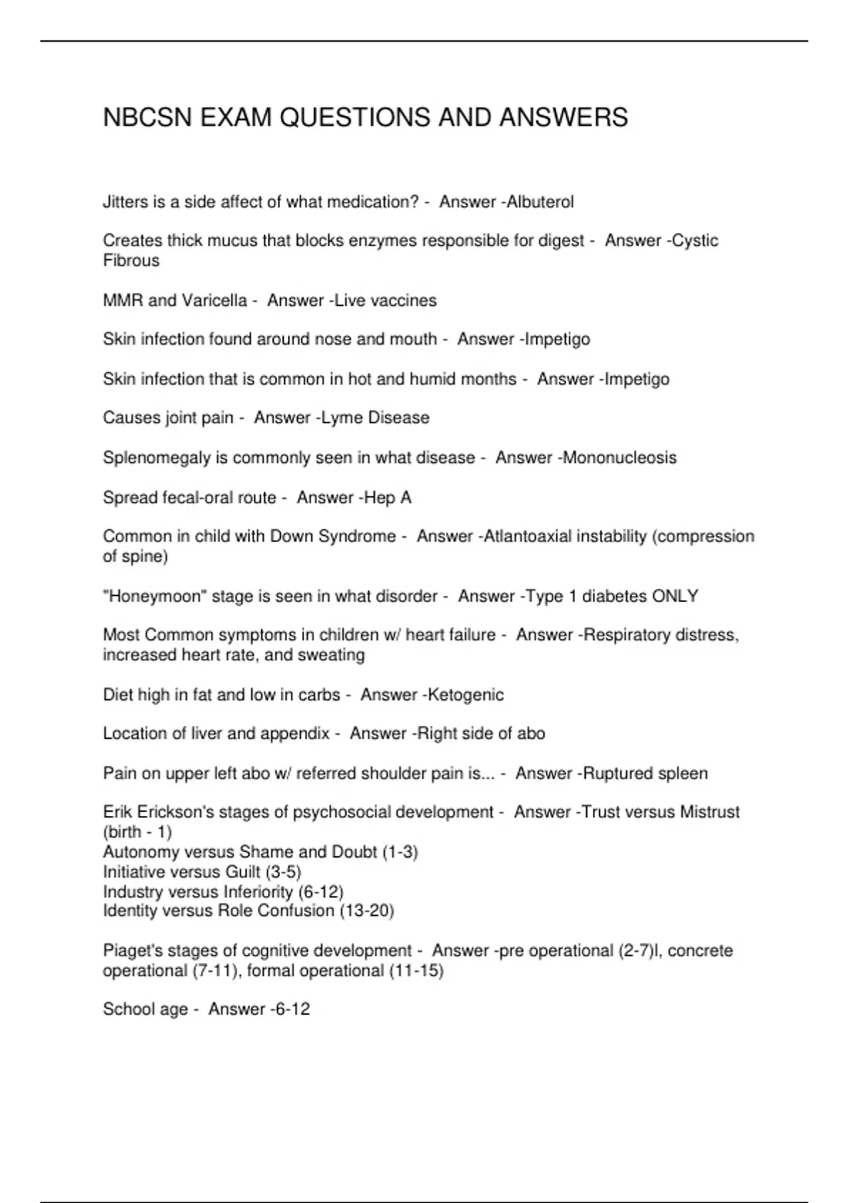 NBCSN EXAM QUESTIONS AND ANSWERS