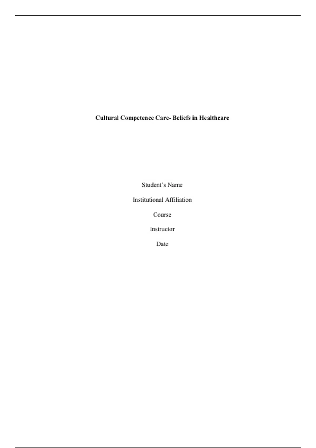 , Cultural Competence Care- Beliefs in Healthcare
