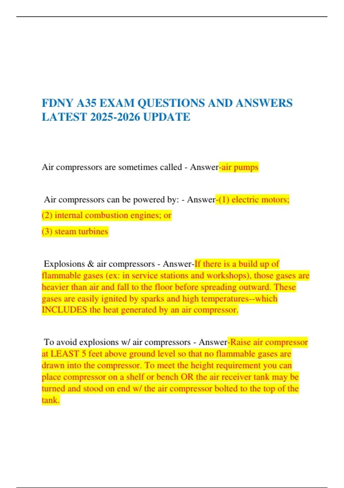 FDNY A35 EXAM QUESTIONS AND ANSWERS